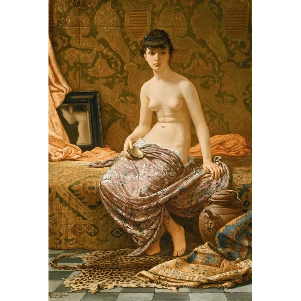 Elihu Vedder, een iconisch kunstenaar van de 19e eeuw, wist de essentie van exotisme vast te leggen door zijn werken. Geïnspireerd door reizen en de culturen die hij heeft ontmoet, ontwikkelde Vedder een unieke stijl die symbolisme en romantiek combineert. L’Odalisque, gemaakt in een periode waarin het Oosten de westerling fascineerde, getuigt van zijn interesse in oosterse thema’s en de representatie van vrouwelijkheid. Zijn carrière, gekenmerkt door een voortdurende zoektocht naar schoonheid en waarheid, maakte hem tot een onmisbare figuur in de Amerikaanse kunst. Vedder wist techniek en emotie te verenigen, en creëerde werken die nog steeds kunstliefhebbers blijven boeien.