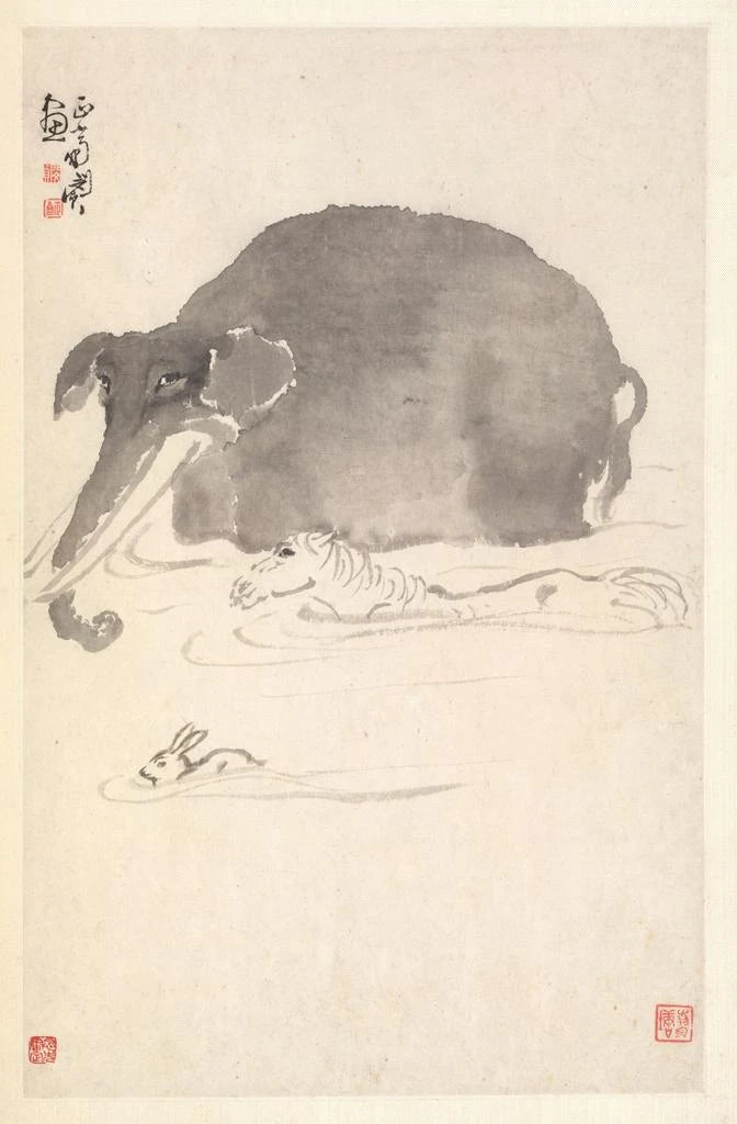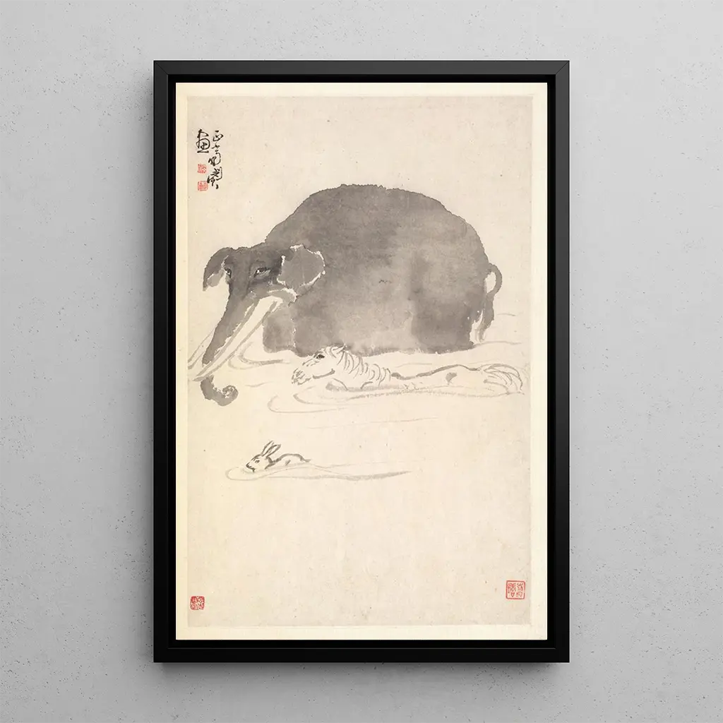 Kunstdruk | Olifant, paard en haas - Min Zhen