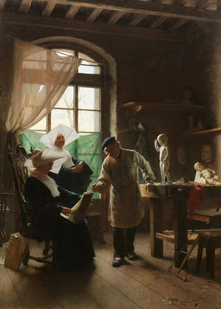 In deze kunstdruk van Een oplettend oog dompelt Giovanni Battista Torriglia ons onder in een sfeer vol emotie en mysterie. De compositie benadrukt een doordringende blik, die een fascinerende psychologische diepte onthult. De kleuren, subtiel genuanceerd, schommelen tussen warme en koude tinten, waardoor een opvallend contrast ontstaat dat de aandacht trekt. De techniek van Torriglia, die realisme combineert met impressionistische accenten, brengt dit werk tot leven en nodigt de kijker uit om na te denken over de gedachten en gevoelens van het afgebeelde personage. Dit doek is een ware uitnodiging tot contemplatie van de menselijke ziel.
