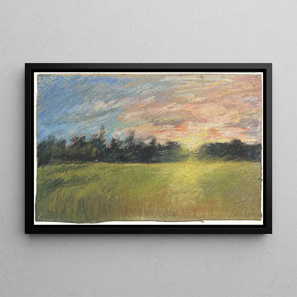 Een weide bij zonsondergang: een harmonie tussen natuur en licht De canvas "Een weide bij zonsondergang" van Paul Huet dompelt ons onder in een idyllisch landschap waar de zachtheid van de schemering de natuur omhult. De warme kleuren, variërend van heldere oranje tinten tot gouden nuances, creëren een serene en rustgevende sfeer. De olieverftechniek op canvas maakt een subtiele samensmelting van tinten mogelijk, waardoor het wuivende gras en de majestueuze bomen tot leven komen. Dit kunstwerk nodigt uit tot contemplatie en brengt de kijker in een moment van suspendie, waarin de tijd lijkt stil te staan voor de vergankelijke schoonheid van een zonsondergang. Paul Huet: een meester van het romantische landschap Paul Huet, een iconische figuur van de Franse romantiek, wist de pracht van de natuur vast te leggen in zijn werken. Geboren in 1803, werd hij beïnvloed door grote landschapsschilders zoals Claude Lorrain en John Constable. Huet wijdde zijn carrière aan het verkennen van Franse landschappen, waarbij hij de wilde schoonheid en het veranderlijke licht benadrukte. Zijn stijl wordt gekenmerkt door een minutieuze aandacht voor details en een rijke palet, wat hem een prominente plaats in de kunstgeschiedenis heeft opgeleverd. "Een weide bij zonsondergang" is een van zijn meest representatieve werken en getuigt van zijn talent om emoties op te roepen door de natuur. Een decoratief kunstwerk met vele voordelen De kunstdruk "Een weide bij zonsondergang" is een ideaal decoratief stuk om een vleugje sereniteit aan uw interieur toe te voegen. Of het nu in een woonkamer, kantoor of slaapkamer is, dit kunstwerk past harmonieus in diverse decoratiestijlen. De kwaliteit van de kunstdruk garandeert een nauwkeurige weergave van de kleuren en details van het originele werk, terwijl het tegelijkertijd een onmiskenbare esthetische aantrekkingskracht biedt. Door voor deze canvas te kiezen, kiest u voor een kunstwerk dat niet alleen uw ruimte verfraait, maar ook een diepe verbinding met de natuur en de schoonheid van vluchtige momenten oproept.