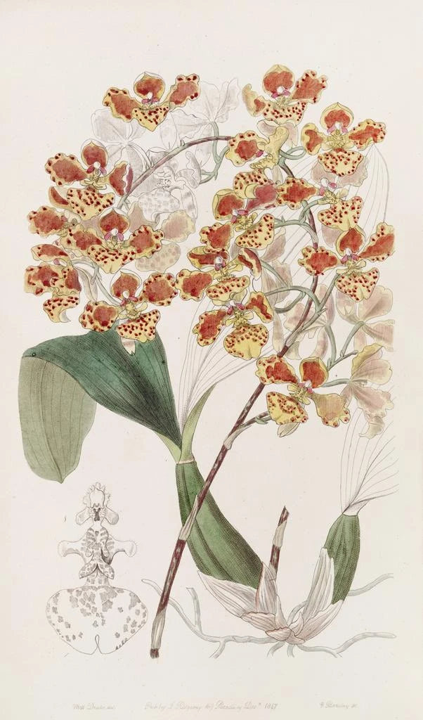 Sydenham Edwards, actif au début du XIXe siècle, est reconnu comme l'un des grands noms de l'illustration botanique. Influencé par le mouvement romantique, il a su capturer la beauté des plantes avec une sensibilité unique. Ses œuvres, souvent publiées dans des ouvrages de botanique, témoignent de son engagement à rendre hommage à la diversité florale. L'oncid frangé s'inscrit dans une période où l'intérêt pour la botanique était en plein essor, et Edwards a joué un rôle clé dans la vulgarisation de ces connaissances à travers ses illustrations. Son héritage perdure, inspirant encore aujourd'hui les passionnés de botanique et d'art.