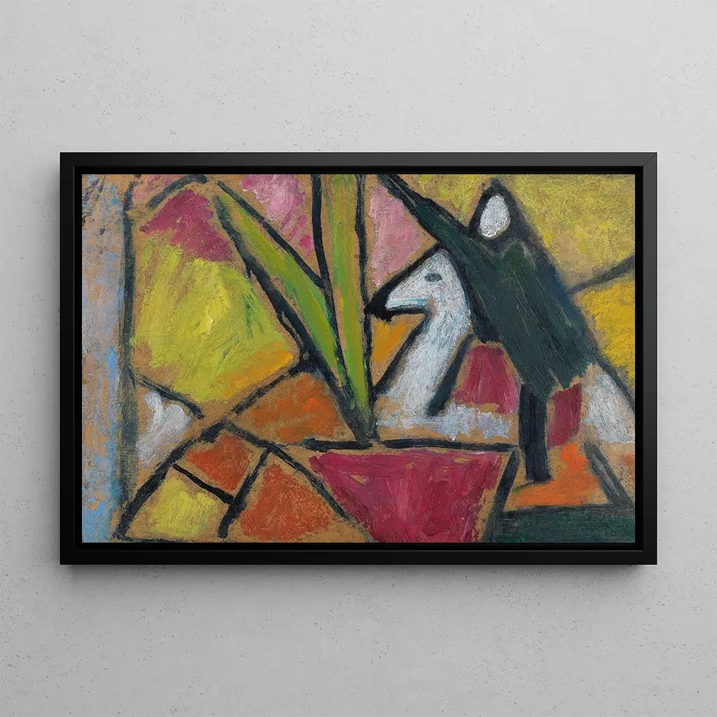 Onbekende titel: een verkenning van emoties door middel van kleur De kunstdruk Onbekende titel van Alexej von Jawlensky is een levendig werk dat uitnodigt tot een onderdompeling in een intense emotionele wereld. De abstracte vormen en de heldere kleuren vermengen zich om een sfeer te creëren die zowel dynamisch als contemplatief is. De gedurfde penseelstreken en de nuances van blauw, rood en geel roepen een rijke palet op die de blik vangt en de verbeelding stimuleert. Elk element van de compositie lijkt met de andere te dialogeren, waardoor een harmonieuze geheel ontstaat dat de eenvoudige voorstelling overstijgt. Dit doek is een ware zintuiglijke reis, waarbij elke blik nieuwe emoties onthult. Alexej von Jawlensky: een pionier van het expressionisme Alexej von Jawlensky, een kunstenaar van Russische afkomst, speelde een belangrijke rol in de ontwikkeling van het expressionisme in het begin van de 20e eeuw. Geïnspireerd door bewegingen zoals het fauvisme en het kubisme, ontwikkelde hij een unieke stijl die de uitdrukking van gevoelens via kleur en vorm benadrukt. Zijn artistieke parcours werd gekenmerkt door verblijven in Duitsland en Zwitserland, waar hij contact had met andere grote meesters van zijn tijd. De periode van het maken van Onbekende titel is bijzonder betekenisvol, omdat het getuigt van zijn zoektocht naar spiritualiteit en emotionele diepgang, terugkerende thema's in zijn werk. Een decoratief stuk met vele voordelen De kunstdruk van het schilderij Onbekende titel van Alexej von Jawlensky is een decoratief stuk dat perfect past in diverse ruimtes zoals de woonkamer, kantoor of slaapkamer. De kwaliteit van de afdruk en de trouw aan de originele kleuren maken het een ideale keuze voor wie een artistiek accent aan hun interieur wil toevoegen. De esthetische aantrekkingskracht van dit doek ligt in zijn vermogen om gesprekken op gang te brengen en de sfeer van een ruimte te verrijken. Door te kiezen voor deze kunstdruk, kiest u voor een werk dat niet alleen uw ruimte verfraait, maar ook uitnodigt tot reflectie en ontsnapping.