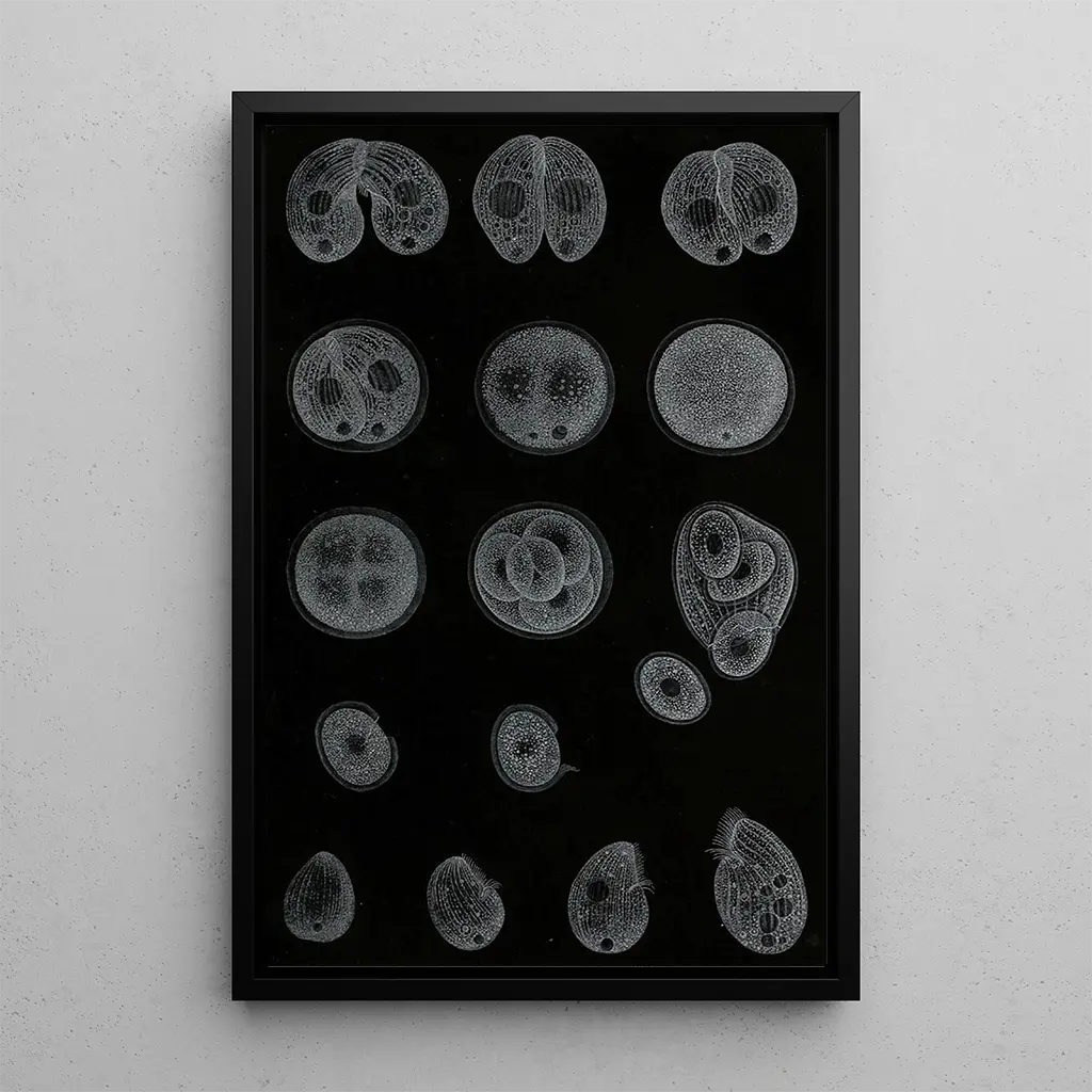 De kunstdruk van de "Ontwikkeling van een infusorium" is een ideale decoratieve keuze voor wie een vleugje originaliteit aan hun interieur wil toevoegen. Of het nu in een kantoor, woonkamer of slaapkamer is, deze doek trekt de aandacht en wekt nieuwsgierigheid. De afdrukkwaliteit garandeert een uitzonderlijke fideliteit aan de details van het originele werk, waardoor je ten volle kunt genieten van de visuele rijkdom die het biedt. Door dit kunstwerk in je ruimte te integreren, creëer je een sfeer die zowel artistiek als educatief is, en die de schoonheid van de microscopische wereld viert. Het is een stuk dat niet alleen je decoratie verrijkt, maar ook je reflectie op de natuur verdiept.