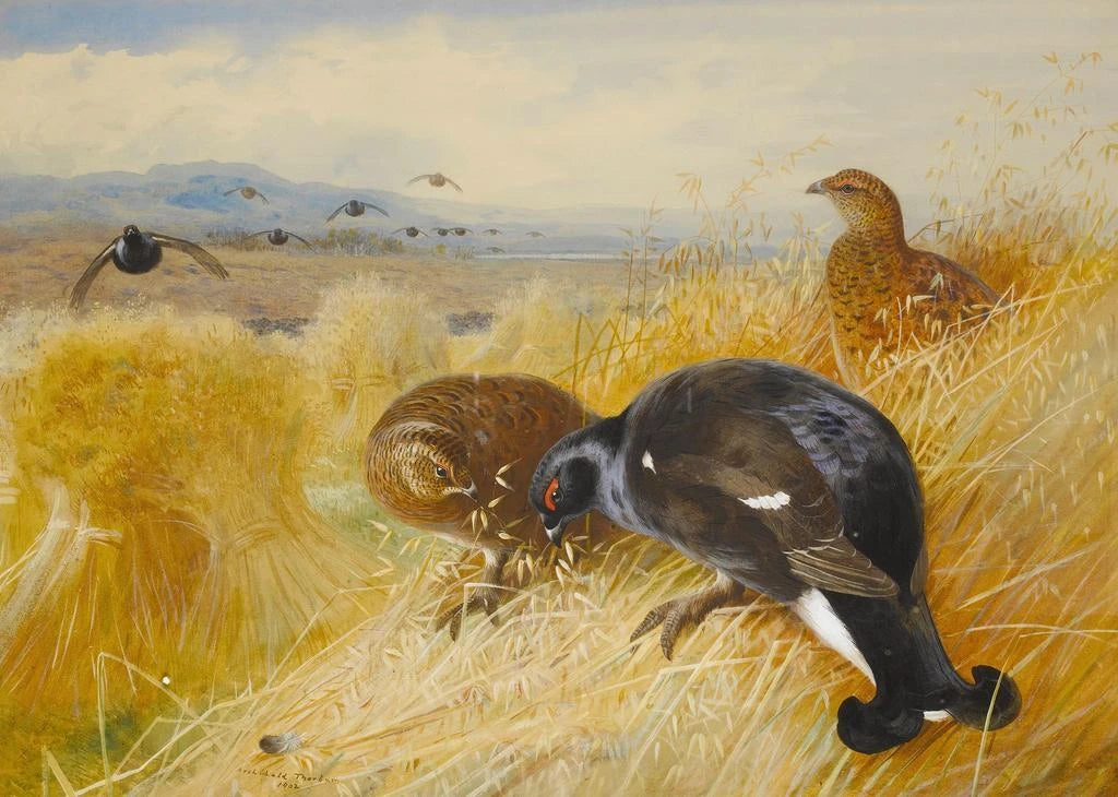 Op de aren van zwart tarwe: een ode aan de natuur en het landelijke leven "Op de aren van zwart tarwe" van Archibald Thorburn is een kunstdruk die de schoonheid van het agrarische landschap viert. De gouden en groene tinten van de tarwevelden mengen harmonieus, terwijl het zonlicht de aren zachtjes streelt. Thorburn, met zijn minutieuze en realistische stijl, slaagt erin de sereniteit van een rustig moment op het platteland vast te leggen. De details van planten en insecten, nauwkeurig weergegeven, getuigen van zijn liefde voor de natuur en zijn inzet om het landelijke leven authentiek te weergeven. Dit kunstwerk roept een sfeer van rust en verbondenheid met de aarde op. Archibald Thorburn: een naturalist aan het begin van de 20e eeuw Archibald Thorburn, geboren in 1860, is een Schotse kunstenaar die bekend staat om zijn illustraties van fauna en flora. Geïnspireerd door de Arts and Crafts-beweging, wist hij een scherp observatievermogen te combineren met een verfijnde artistieke aanpak. Zijn carrière werd gekenmerkt door een passie voor de natuur, die hij vertaalde in zijn werken, vooral in landschappen en scènes van het wilde leven. Tijdens de Victoriaanse periode heeft Thorburn bijgedragen aan het bewustmaken van het publiek over de schoonheid van de natuur, en zijn werk blijft inspireren voor liefhebbers van kunst en milieu. "Op de aren van zwart tarwe" is een getuigenis van zijn talent en zijn betrokkenheid bij de natuur. Een decoratief stuk met vele voordelen De kunstdruk van "Op de aren van zwart tarwe" is een perfecte keuze om een vleugje natuur aan uw interieurdecoratie toe te voegen. Of het nu in een eetkamer, kantoor of slaapkamer is, dit doek roept rust en de schoonheid van landelijke landschappen op. De afdrukkwaliteit garandeert een goede weergave van de kleuren en details van het originele kunstwerk, waardoor elke kijker de harmonie van de scène kan voelen. Door dit kunstwerk aan uw ruimte toe te voegen, creëert u een warme en uitnodigende sfeer, terwijl u kunst en natuur viert. Dit kunstwerk is veel meer dan een eenvoudig decoratief element; het is een uitnodiging tot contemplatie en ontsnapping.