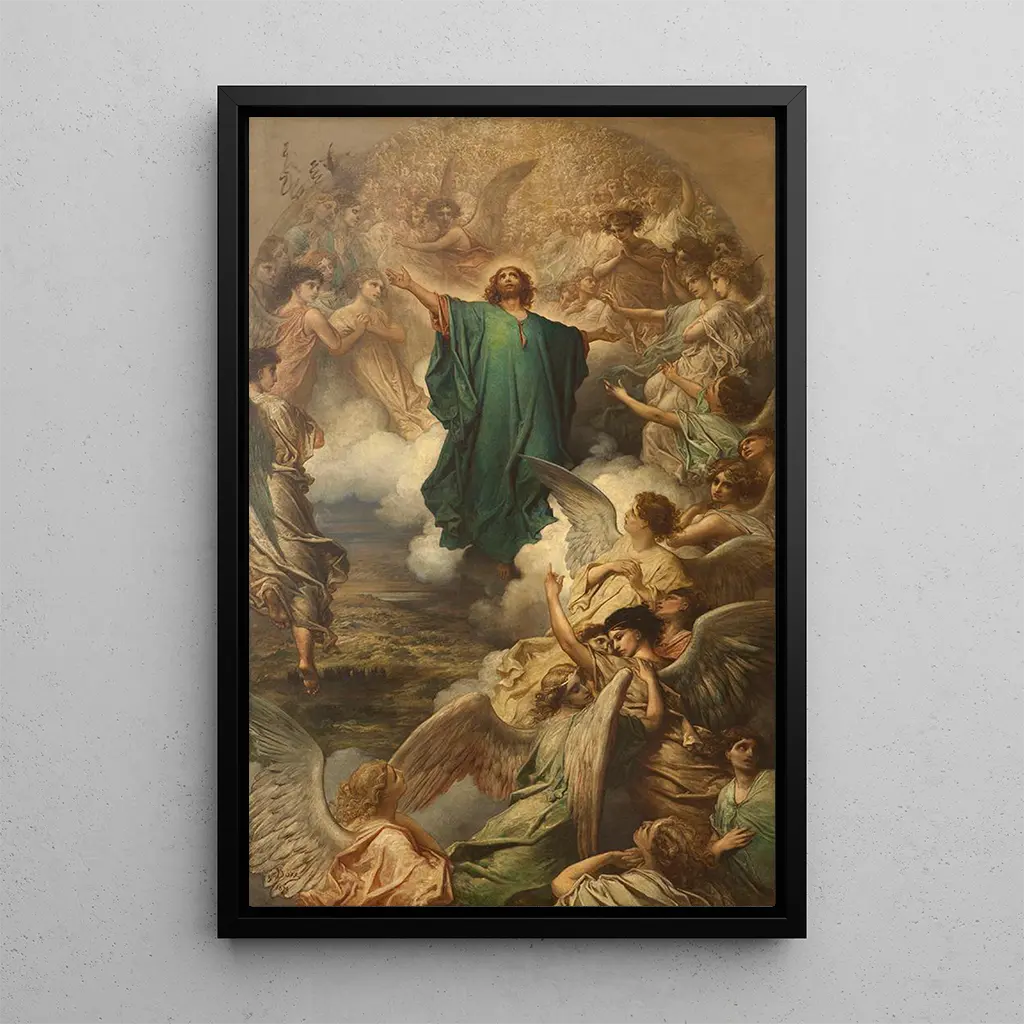 L'Ascension van Gustave Doré is een kunstdruk die verder gaat dan een eenvoudig schilderij en een ware spirituele ervaring biedt. De levendige kleuren en de opvallende contrasten creëren een majestueuze en serene sfeer. De houtsnede-techniek, beheerst door Doré, brengt elk detail tot leven, van de kolkende wolken tot de hemelse figuren. De kunstdruk nodigt de kijker uit om de passage van het goddelijke te overdenken, en vangt de essentie van een heilig moment waarin het aardse het hemelse ontmoet. L'Ascension is zo een viering van geloof en hoop, een oproep tot spirituele verheffing.