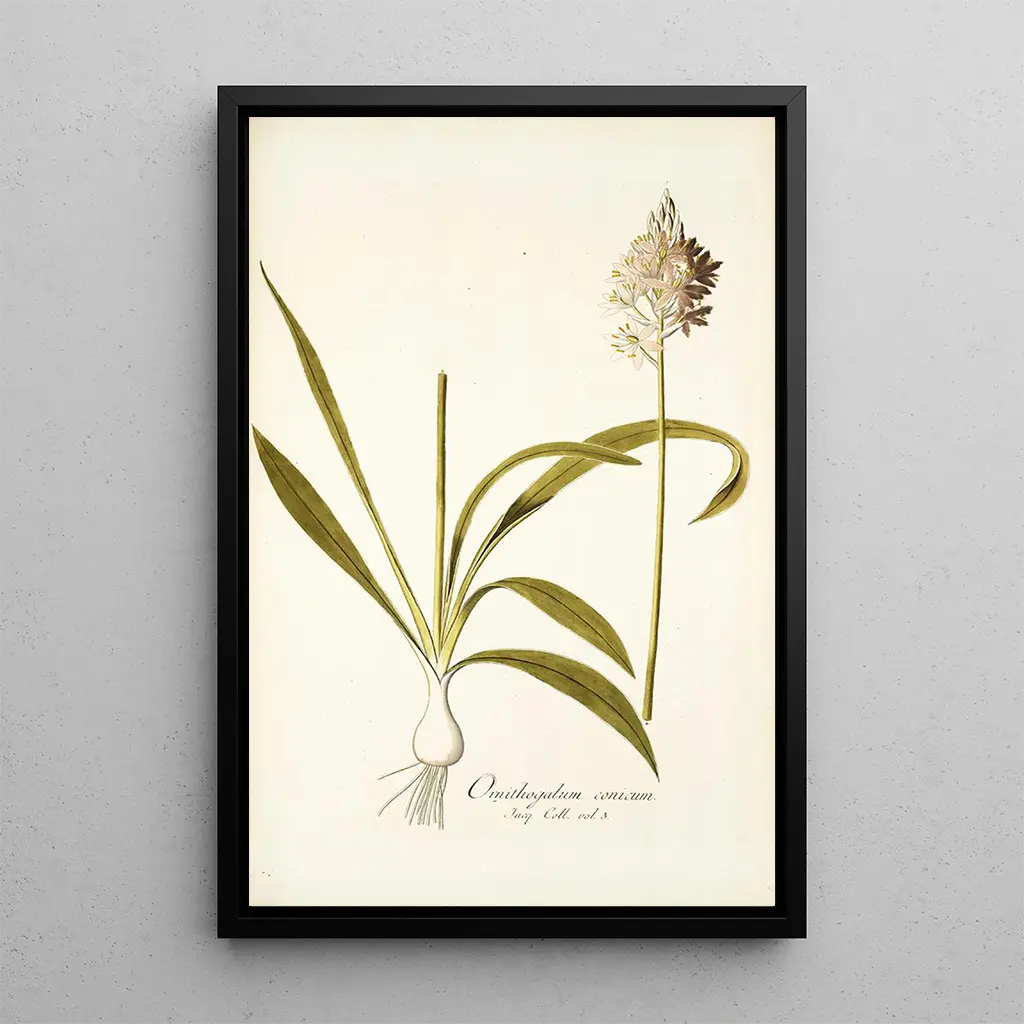 Ornithogalum conicum : een delicate botanische verkenning L'œuvre 'Ornithogalum conicum' de Nikolaus Joseph Freiherr von Jacquin est une représentation fascinante de cette plante, capturant sa forme élégante et ses détails minutieux. Les couleurs douces et naturelles, allant du vert tendre au blanc éclatant, évoquent une atmosphère de sérénité et de fraîcheur. La technique de l'aquarelle, utilisée avec précision, permet de rendre la transparence des pétales et la texture des feuilles, offrant ainsi une expérience visuelle immersive. Ce tableau est bien plus qu'une simple illustration botanique ; c'est une invitation à admirer la beauté de la nature sous un angle artistique. Nikolaus Joseph Freiherr von Jacquin : un pionnier de l'illustration botanique Nikolaus Joseph Freiherr von Jacquin, botaniste et artiste du XVIIIe siècle, a joué un rôle essentiel dans le développement de l'illustration botanique. Formé à Vienne, il a été influencé par les découvertes scientifiques de son époque et a voyagé dans les colonies pour étudier la flore locale. Son travail a contribué à la compréhension des plantes exotiques et à la documentation de la biodiversité. 'Ornithogalum conicum' s'inscrit dans cette tradition, alliant rigueur scientifique et sensibilité artistique. Jacquin est reconnu pour sa capacité à marier l'art et la science, faisant de ses œuvres des références incontournables pour les botanistes et les artistes. Une acquisition décorative aux multiples atouts De reproductie van 'Ornithogalum conicum' is een ideale keuze om diverse ruimtes te verfraaien, of het nu in een woonkamer, kantoor of slaapkamer is. De afdrukkwaliteit garandeert een nauwkeurigheid in de details van het originele kunstwerk, terwijl het een vleugje natuur toevoegt aan je interieurdecoratie. Dit kunstdruk, met zijn esthetische aantrekkingskracht, creëert een rustgevende en inspirerende sfeer, perfect voor wie de schoonheid van planten waardeert. Door deze doek in je ruimte te integreren, voeg je niet alleen een kunstwerk toe, maar ook een stuk dat de rijkdom van de natuur en de visuele harmonie oproept.