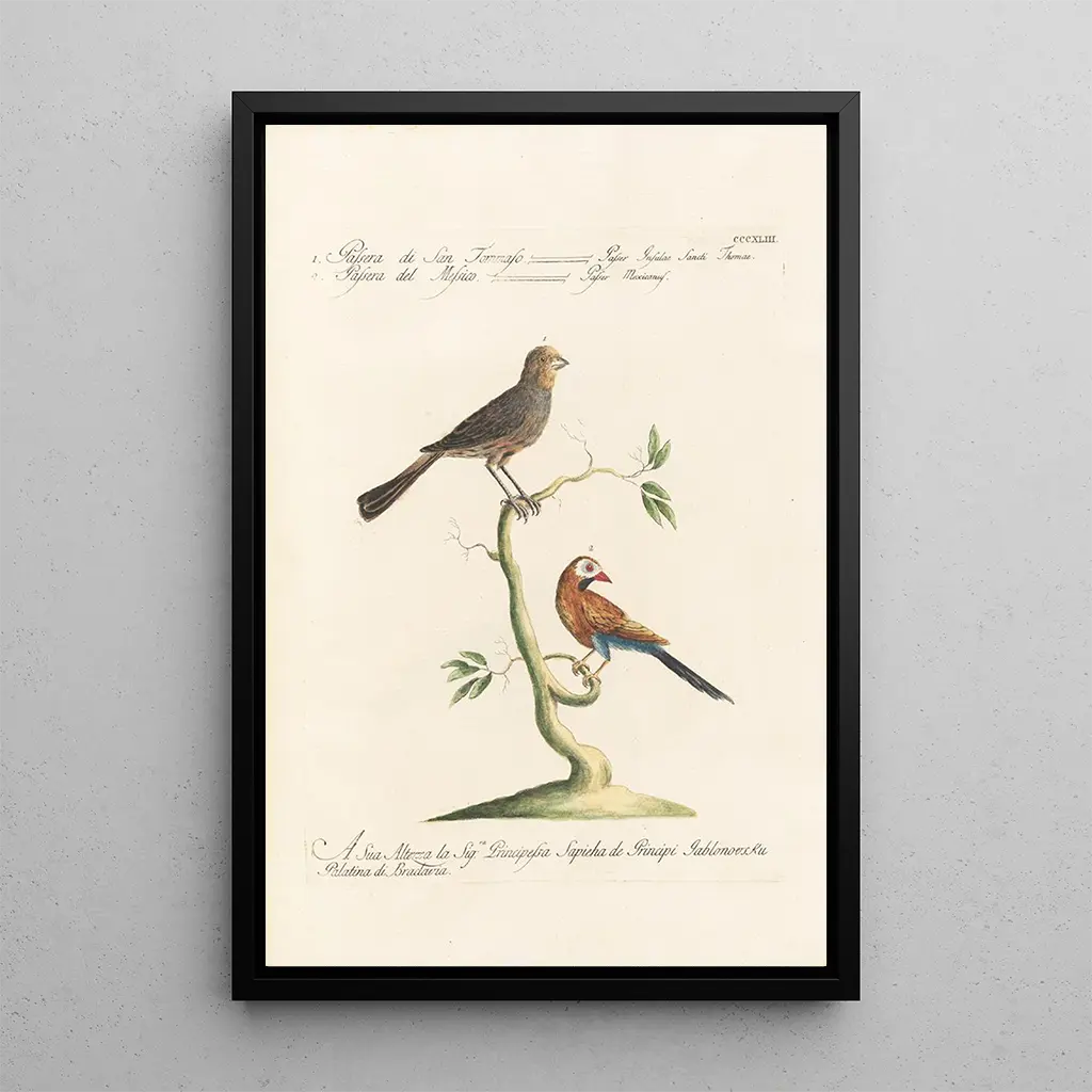De kunstdruk van Ornithologia methodice digesta Pl325 van Saverio Manetti brengt ons in een wereld vol kleuren en vormen, waar elke vogel met grote zorg wordt afgebeeld. De heldere tinten en de delicate details van de verenkleed getuigen van een aandachtige observatie van de natuur. De gebruikte techniek, zowel nauwkeurig als expressief, creëert een levendige sfeer die uitnodigt tot verwondering. Elke vogel, vastgelegd in een natuurlijke houding, roept een gevoel van beweging en leven op, waardoor dit doek een echt meesterwerk van artistieke ornithologie wordt.
