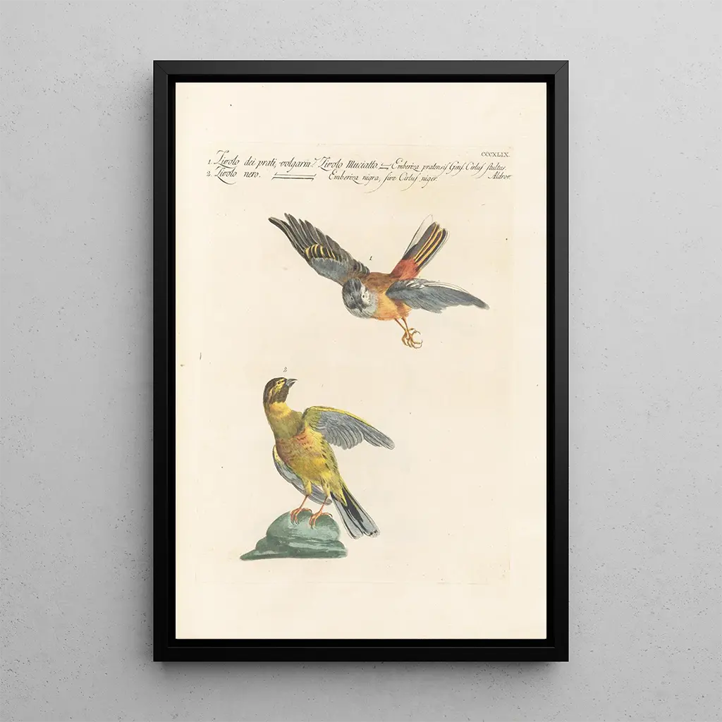 De kunstdruk van Ornithologia methodice digesta Pl331 dompelt ons onder in een fascinerende wereld waar de natuur zich uitdrukt met éclat. De delicate illustraties van Saverio Manetti vangen de gratie van de vogels, met minutieuze details in de verenkleed en houdingen. De levendige en harmonieuze kleuren, variërend van diepe blauwen tot heldere geeltonen, creëren een levendige en vrolijke sfeer. Elk element van de compositie lijkt te dansen onder het licht, en nodigt de kijker uit tot een aandachtige contemplatie van de vogelmoed. Dit werk, zowel wetenschappelijk als artistiek, getuigt van een passie voor het observeren van de natuur.