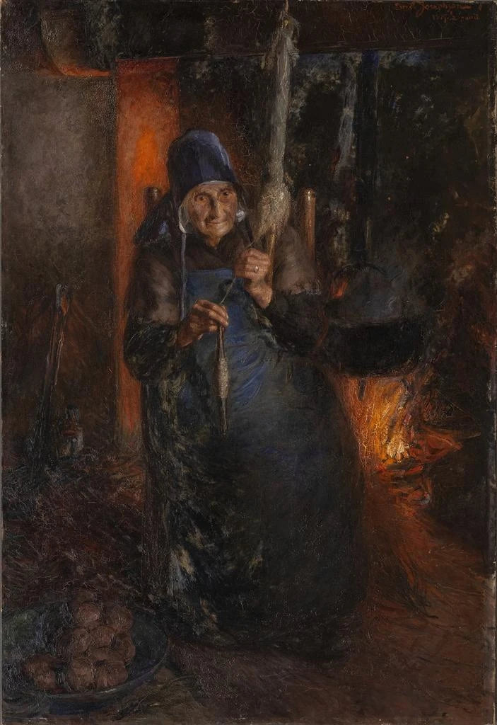 Schilderij Oude vrouw die weeft - Ernst Josephson | Kunstdruk