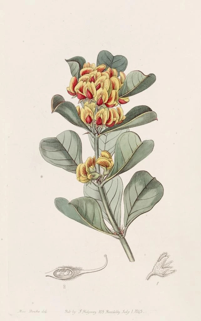 Schilderij Oxylobium à feuilles en coin - Sydenham Edwards | Kunstdruk