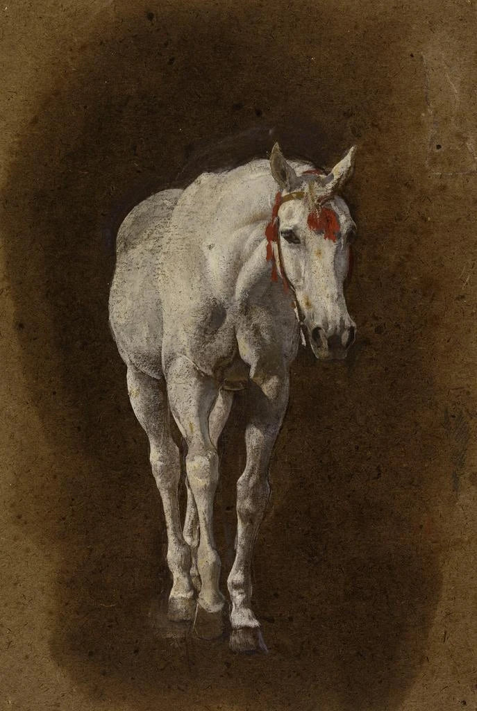 In dit boeiende kunstwerk schildert Léon Bonnat een paard in al zijn pracht. De dynamische compositie, waarin het dier krachtig lijkt te galopperen, wordt versterkt door rijke kleuren en nuances van bruin en zwart. De techniek van Bonnat, die realisme en impressionisme combineert, creëert een levendige, bijna tastbare sfeer. De minutieuze details van de manen en de spieren van het paard getuigen van de vaardigheid van de kunstenaar om de wilde schoonheid van dit dier vast te leggen. Deze kunstdruk van het paard nodigt de kijker uit om de kracht en gratie van de natuur te voelen, terwijl het een venster biedt op de ruitersportwereld van de 19e eeuw.