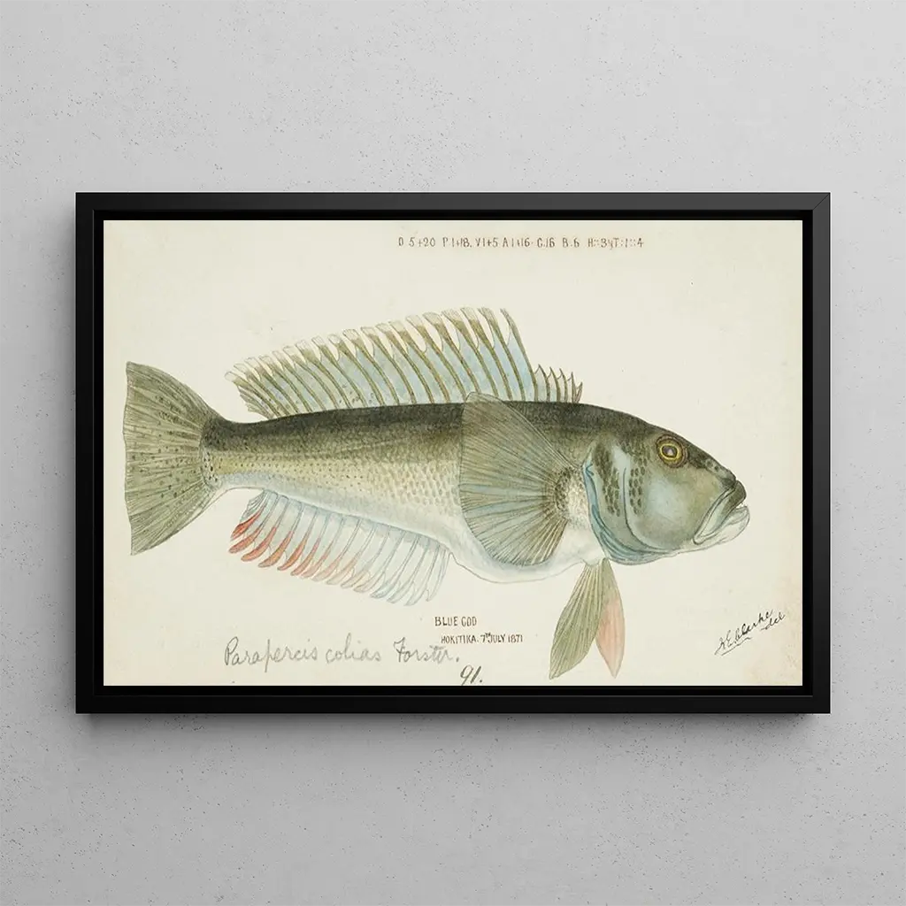 Parapercis colias : een dans van mariene kleuren De kunstdruk van Parapercis colias dompelt ons onder in een fascinerende waterwereld. Dit schilderij, levendig met tinten azuurblauw en gouden accenten, roept de lichtheid en de vloeiendheid van onderwaterbewegingen op. De techniek van de kunstenaar, die realisme en impressionisme combineert, creëert een bijna dromerige sfeer, waarin elk detail, van glinsterende schubben tot lichtreflecties, lijkt een bevroren moment vast te leggen. De harmonieuze compositie van dit schilderij nodigt uit tot ontsnapping en biedt een venster op de schoonheid van de zeebodem. Frank Edward Clarke : een pionier van maritieme kunst Frank Edward Clarke, actief in het begin van de 20e eeuw, wordt erkend om zijn vermogen om het zeeleven met opmerkelijke precisie te vereeuwigen. Geïnspireerd door de artistieke stromingen van zijn tijd, wist hij traditionele technieken te combineren met innovaties om zijn waterdieren tot leven te brengen. Clarke heeft vaak de thema's natuur en zee verkend, en zijn werken getuigen van een diepe bewondering voor de mariene omgeving. Zijn artistieke nalatenschap blijft kunstenaars en natuurliefhebbers inspireren, waardoor hij een onmisbare figuur is in de maritieme kunst. Een decoratief stuk met vele voordelen De kunstdruk van het schilderij Parapercis colias is een ideale keuze om uw interieur te verfraaien, of het nu in een woonkamer, kantoor of slaapkamer is. De kwaliteit van de afdruk en de trouw aan de originele kleuren maken het een eyecatcher die de aandacht trekt en verwondering oproept. Door deze doek in uw inrichting te integreren, brengt u een vleugje elegantie en rust in uw ruimte, terwijl u de schoonheid van het zeeleven viert. Dit schilderij is niet alleen een esthetisch accent, maar ook een uitnodiging tot contemplatie en dromerigheid.