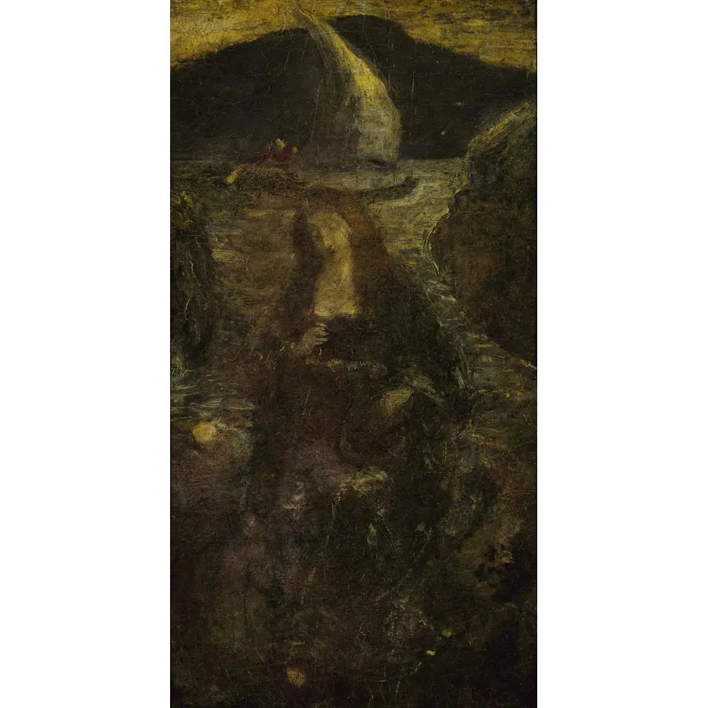 Albert Pinkham Ryder, figure emblématique du romantisme américain, a su s'imposer comme un artiste visionnaire à la fin du XIXe siècle. Ses œuvres, souvent inspirées par la littérature et la poésie, reflètent une sensibilité unique à l'égard des thèmes universels tels que l'amour, la mort et la nature. Ryder a été influencé par des artistes européens, mais a su développer un style distinctif, caractérisé par des compositions dramatiques et une palette de couleurs riche. « Chanson passagère » s'inscrit dans cette tradition, offrant une réflexion sur la beauté fugace de l'existence.