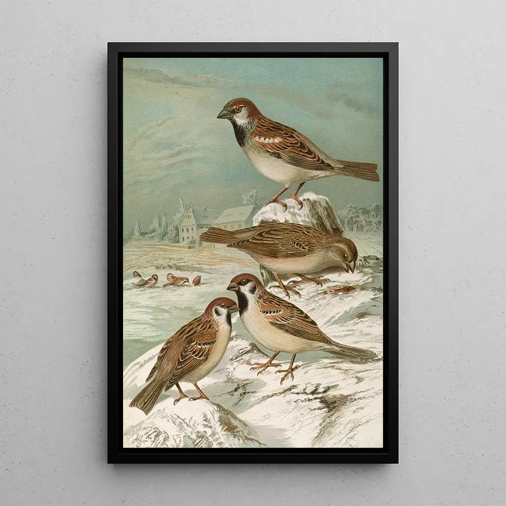 De kunstdruk van het werk Passer domesticus Passer montanus vangt de essentie van het stadsleven door de ogen van mussen. De aardse kleuren en de minutieuze details van de verenkleed roepen een vertrouwde scène op, waarin deze vogels zich mengen in de stedelijke omgeving. De kunstenaar slaagt erin een levendige sfeer over te brengen, waarin beweging en dynamiek van de mussen voelbaar zijn. Elke penseelstreek lijkt een verhaal te vertellen, dat van deze kleine wezens die, hoewel gewoon, een vleugje leven en charme aan onze steden toevoegen.