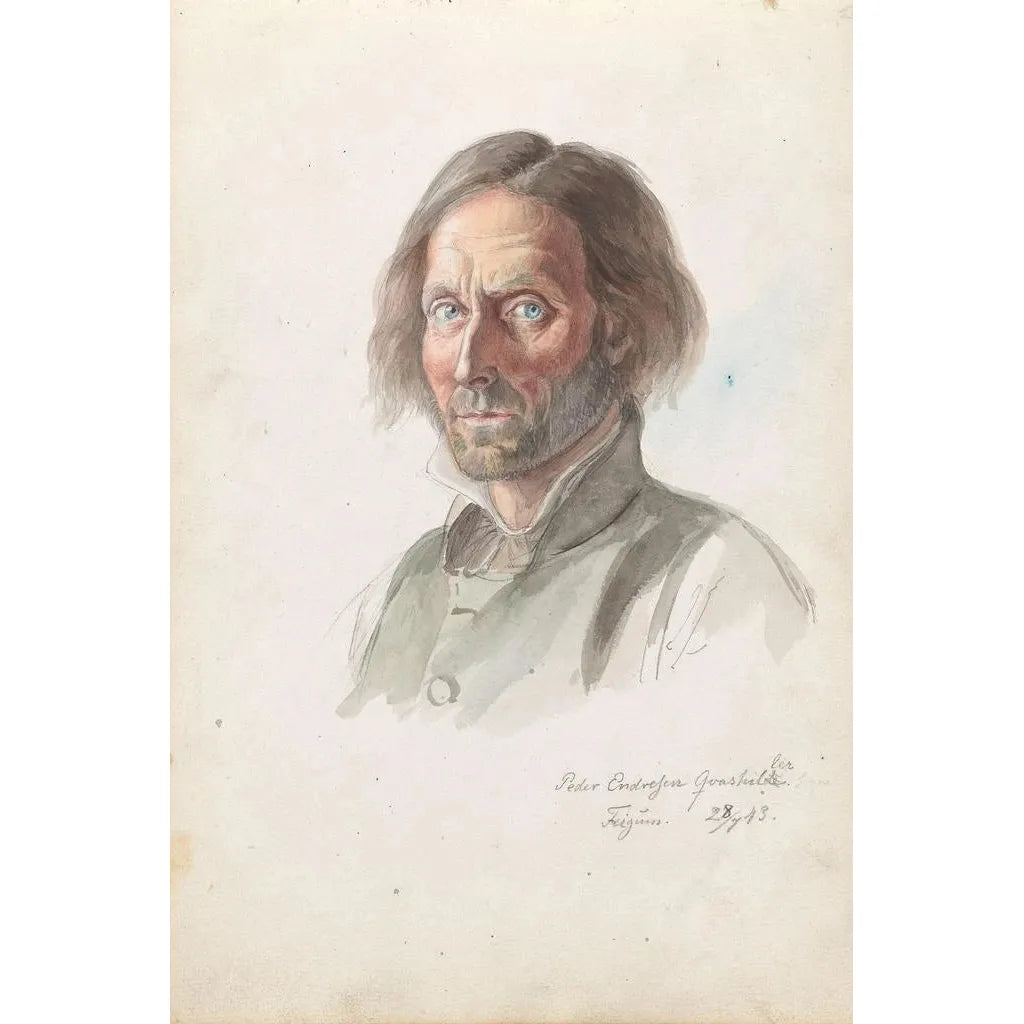 Adolph Tidemand, geboren in 1814, is een Noorse schilder die bekend staat om zijn weergaven van het dagelijks leven en Scandinavische tradities. Geïnspireerd door de romantiek, wist hij de schoonheid van Noorse landschappen en de diepte van menselijke emoties vast te leggen. Zijn carrière, gekenmerkt door reizen door Europa, heeft hem geholpen zijn stijl te verfijnen, waarbij hij elementen van historisch schilderen integreerde terwijl hij trouw bleef aan zijn culturele erfgoed. Tidemand wordt beschouwd als een van de pioniers van de romantische beweging in Noorwegen, en zijn werken, waaronder Peder Endresen Kvashiller, getuigen van zijn inzet om de ziel van zijn land te vertegenwoordigen.