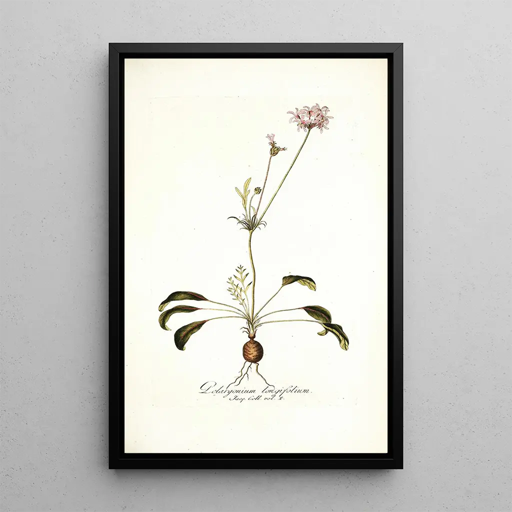 De kunstdruk Pelargonium longifolium van Nikolaus Joseph Freiherr von Jacquin brengt ons in een wereld waar de natuur zich uitdrukt met éclat. Dit werk benadrukt bloemen met gracieuze vormen, waarvan de levendige tinten de vitaliteit van een weelderige tuin oproepen. De aquareltechniek, vakkundig toegepast, geeft deze kunstdruk een lichtheid en transparantie die de essentie van de bloei vastleggen. De sfeer die uit dit doek straalt, is zowel vrolijk als rustgevend, en nodigt uit tot een zachte en inspirerende contemplatie.