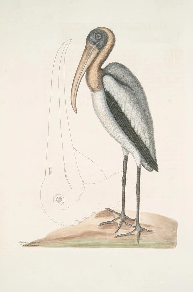 Mark Catesby, een belangrijke figuur uit de achttiende eeuw, wordt vaak beschouwd als een van de eerste naturalisten die de fauna en flora van Amerika documenteerde. Zijn artistieke en wetenschappelijke benadering werd beïnvloed door zijn reizen in Amerika, waar hij nog onbekende soorten in Europa observeerde en tekende. Catesby wist de essentie van de natuur vast te leggen met opmerkelijke precisie, zoals blijkt uit de kunstdruk Pelicanus Sylvaticus. Zijn werk heeft niet alleen de wetenschappelijke kennis verrijkt, maar ook het publiek bewust gemaakt van de schoonheid en diversiteit van ecosystemen.