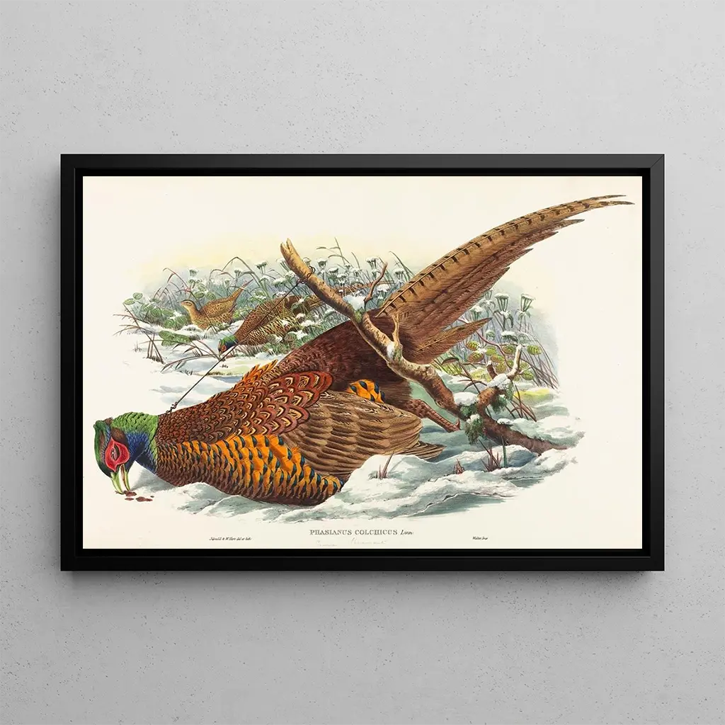 Phasianus colchicus : een schittering van kleuren in de natuur De kunstdruk van Phasianus colchicus, een iconisch werk van John Gould, roept de pracht van de vogelrijke fauna op. In dit schilderij mengen de levendige kleuren van de fazantenveren zich harmonieus met een delicate achtergrond, waardoor een sfeer ontstaat die zowel levendig als sereen is. Gould, meester in ornithologische illustratie, gebruikt graveertechnieken en aquarel om elk detail met opmerkelijke precisie vast te leggen. Het werk nodigt uit tot een aandachtige contemplatie, waarbij elke tint en elke veerstreek tot leven lijken te komen, en de kijker meeneemt in een rijke en fascinerende natuurlijke wereld. John Gould : pionier in artistieke ornithologie John Gould, Britse natuuronderzoeker en illustrator uit de 19e eeuw, heeft het vakgebied van de ornithologie diepgaand beïnvloed met zijn werken. Geboren in 1804, wijdde hij zijn leven aan de studie van vogels en reisde hij de wereld rond om de vogeldiversiteit te documenteren. Zijn illustraties, vaak beschouwd als meesterwerken, combineren wetenschap en kunst en weerspiegelen de esthetiek van zijn Victoriaanse tijd. Gould werkte samen met vele kunstenaars en wetenschappers, wat hem in staat stelde werken te creëren die zowel informatief als visueel boeiend zijn. Zijn nalatenschap blijft voortbestaan, en zijn kunstdrukken blijven liefhebbers van kunst en natuur inspireren. Een decoratief stuk met vele voordelen De kunstdruk van Phasianus colchicus is een ideaal decoratief stuk voor elke ruimte, of het nu een woonkamer, kantoor of slaapkamer is. De hoge printkwaliteit en de trouw aan de originele details maken van dit doek een aantrekkelijke keuze voor kunst- en natuurliefhebbers. Door dit werk aan uw interieurdecoratie toe te voegen, brengt u een vleugje elegantie en kleur, terwijl u de schoonheid van de fauna viert. Dit schilderij, met zijn verfijnde esthetiek, zal de aandacht trekken en gesprekken stimuleren, waardoor uw ruimte een plek wordt van inspiratie en contemplatie.