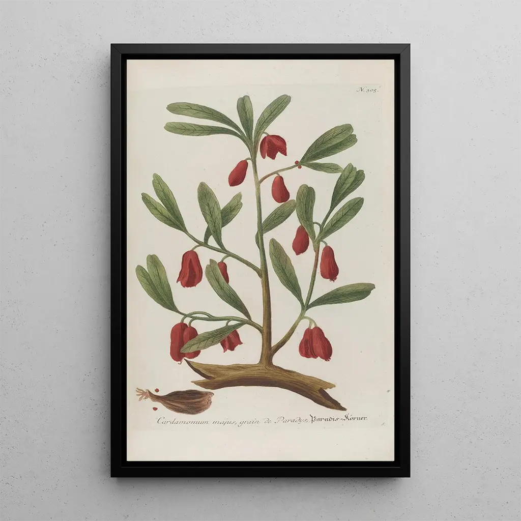 De kunstdruk van Phytanthoza iconographia Pl028 brengt de kijker mee in een fascinerend botanisch universum, waar elke plant met opmerkelijke precisie wordt weergegeven. De levendige nuances van kleuren, variërend van diepe groenen tot delicate rozen, creëren een harmonieuze compositie die de aandacht trekt. De graveertechniek van Johann Wilhelm Weinmann benadrukt de rijkdom aan details, van bladeren tot bloemen, en biedt een volledige onderdompeling in de schoonheid van de natuur. Dit werk is een ware uitnodiging om de diversiteit van de flora die ons omringt te verkennen.
