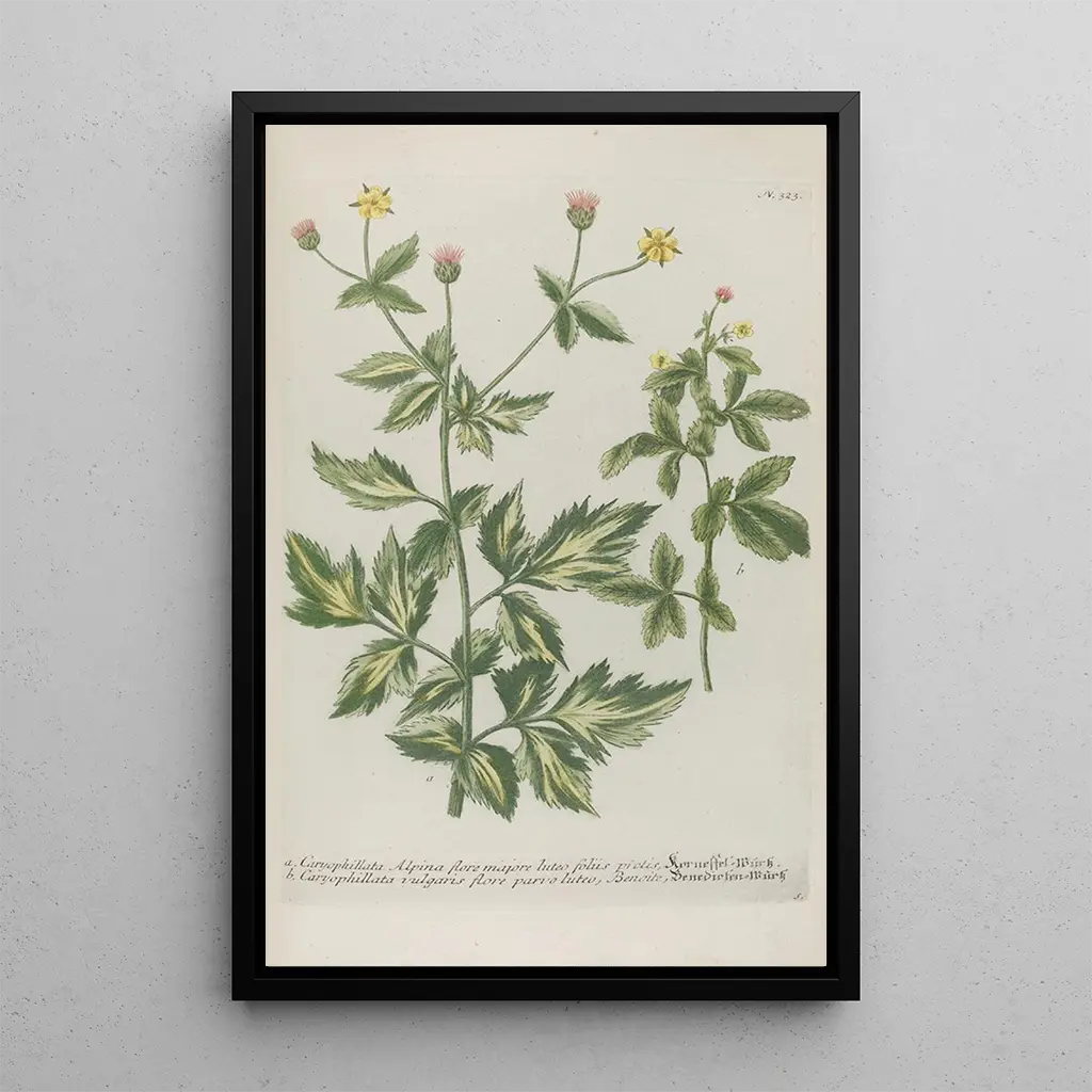 De kunstdruk van Phytanthoza iconographia Pl046 brengt ons naar een weelderige tuin, waar elke plant met zorg wordt benadrukt. Dit werk onderscheidt zich door zijn dynamische compositie, waarin stralende bloemen zich mengen met delicate bladeren, en zo een schilderij van grote visuele rijkdom creëren. De levendige kleuren, variërend van heldere geel tot diepe violet, roepen een gevoel van frisheid en vitaliteit op. De graveertechniek van Johann Wilhelm Weinmann maakt het mogelijk om elk detail met opmerkelijke precisie weer te geven, waardoor een sfeer ontstaat die zowel realistisch als poëtisch is, en uitnodigt tot ontsnapping.