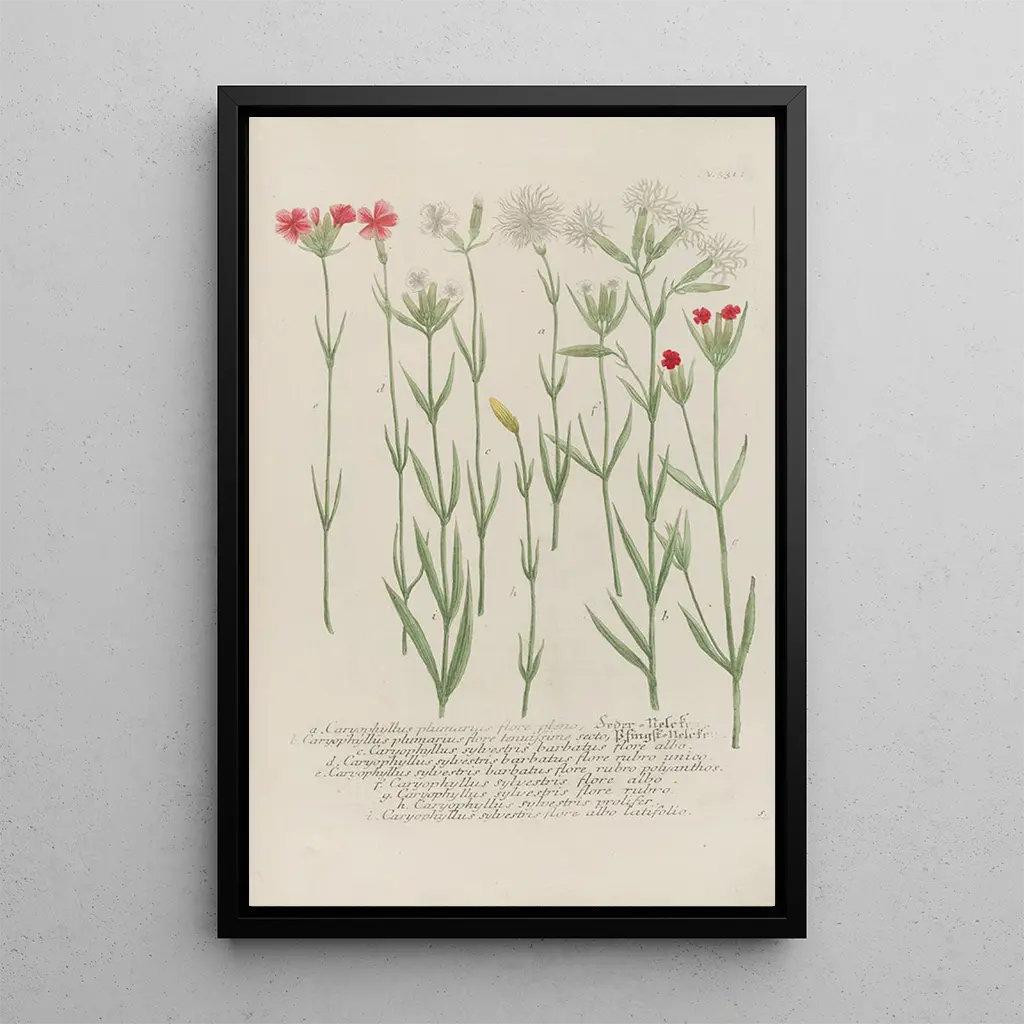 Phytanthoza iconographia Pl054 : een viering van de biodiversiteit De kunstdruk van Phytanthoza iconographia Pl054 dompelt ons onder in een rijke en kleurrijke botanische wereld. Dit werk, gemaakt door Johann Wilhelm Weinmann, onderscheidt zich door zijn minutieuze compositie en levendige kleuren. Elk detail van de planten wordt zorgvuldig weergegeven, wat een sfeer creëert die zowel wetenschappelijk als poëtisch is. De nuances van groen, roze en geel verweven zich harmonieus, waardoor een gevoel van leven en beweging ontstaat. De kunstenaar slaagt erin de essentie van de natuur vast te leggen en nodigt de kijker uit tot een aandachtige contemplatie van de plantenkunst. Johann Wilhelm Weinmann : een pionier in botanische illustratie Johann Wilhelm Weinmann, actief in de achttiende eeuw, wordt erkend als een van de voorlopers van de botanische kunstdruk. Zijn passie voor planten en zijn wens om ze nauwkeurig weer te geven, hebben hem geleid tot het creëren van werken die kunst en wetenschap combineren. Geïnspireerd door de botanische ontdekkingen van zijn tijd, wist Weinmann natuurlijke elementen in zijn composities te integreren, terwijl hij de normen van de wetenschappelijke illustratie respecteerde. Zijn werk had een aanzienlijke invloed op de manier waarop planten werden waargenomen en afgebeeld, waardoor hij een iconische figuur van zijn tijd werd. Een decoratieve aankoop met vele voordelen De kunstdruk van Phytanthoza iconographia Pl054 vormt een ideale decoratieve keuze voor diverse ruimtes, of het nu een woonkamer, kantoor of slaapkamer betreft. De kwaliteit van de afdruk en de trouw aan de originele kleuren maken het een boeiend kunstwerk dat de aandacht trekt. Door dit schilderij in uw inrichting te integreren, brengt u een vleugje elegantie en verfijning aan, terwijl u de schoonheid van de natuur viert. De esthetische aantrekkingskracht van dit doek zal ongetwijfeld gesprekken stimuleren en de sfeer in uw interieur verrijken.