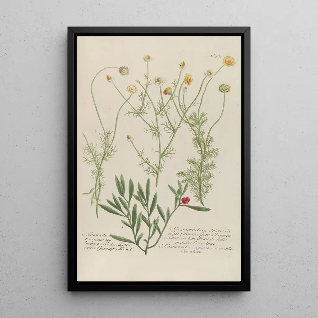 La kunstdruk de Phytanthoza iconographia Pl085 nous plonge dans un univers botanique fascinant, où chaque détail est soigneusement mis en valeur. Les couleurs éclatantes et les formes variées des plantes créent une composition dynamique qui attire le regard. Grâce à la technique de gravure de Johann Wilhelm Weinmann, les nuances délicates et les textures des feuilles et des fleurs sont rendues avec une précision remarquable. Cette œuvre évoque une sensation de fraîcheur et de vitalité, comme si l'on se trouvait au cœur d'un jardin en pleine floraison, invitant à la contemplation et à l'émerveillement.