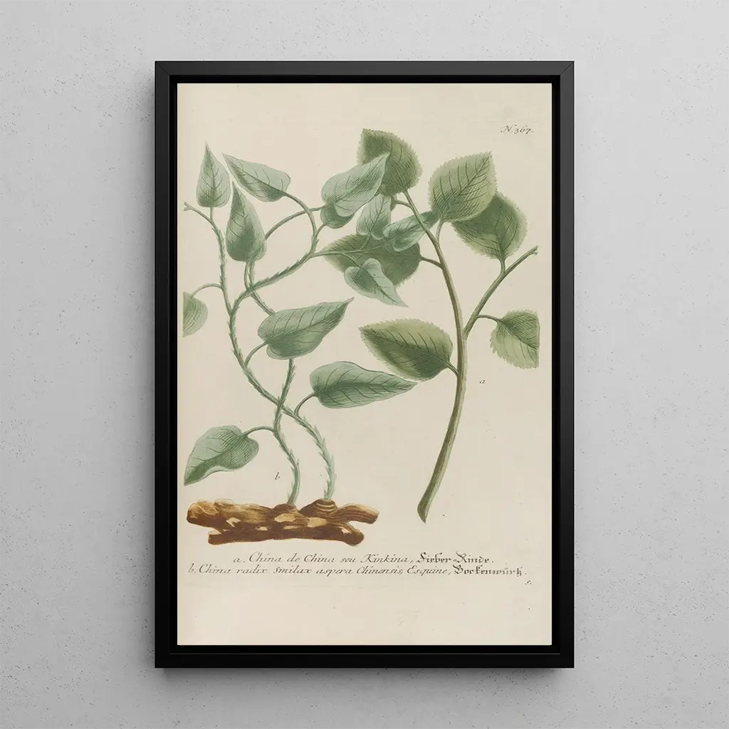 De kunstdruk van Phytanthoza iconographia Pl090 dompelt ons onder in een weelderig universum waar de natuur zich in al haar pracht ontvouwt. De levendige kleuren en de minutieuze details van de geïllustreerde planten vangen het oog en nodigen uit tot een aandachtige contemplatie. De graveertechniek die door Johann Wilhelm Weinmann wordt gebruikt, maakt het mogelijk om elk blad, elke bloem met opmerkelijke precisie weer te geven, waardoor een sfeer ontstaat die zowel wetenschappelijk als poëtisch is. Dit schilderij, een ware ode aan de botanica, roept de vergankelijke schoonheid van de flora op en biedt tegelijkertijd een fascinerend inzicht in de plantendiversiteit.