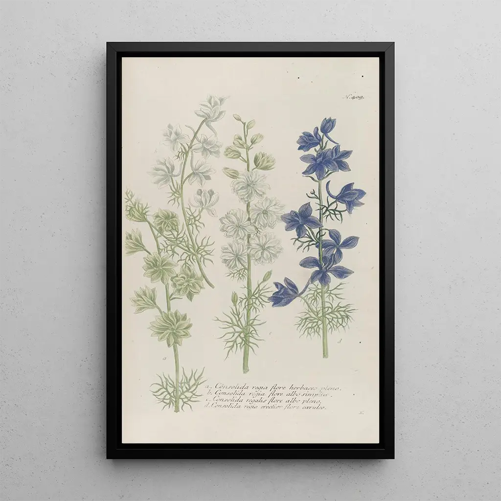 La kunstdruk de Phytanthoza iconographia Pl132 nous plonge dans un univers botanique fascinant, où chaque détail est soigneusement mis en valeur. Les couleurs vibrantes et les nuances délicates des plantes illustrées évoquent une nature luxuriante et foisonnante. La technique de gravure utilisée par Johann Wilhelm Weinmann permet de capturer la texture des feuilles et la délicatesse des fleurs, créant ainsi une atmosphère presque palpable. Ce tableau, véritable ode à la flore, invite à la contemplation et à l'émerveillement devant la beauté du monde naturel.