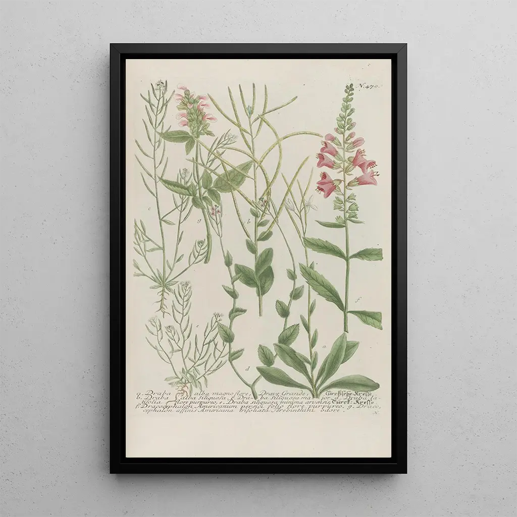 De kunstdruk van Phytanthoza iconographia Pl193 dompelt ons onder in een fascinerende botanische wereld, waar elk detail zorgvuldig wordt benadrukt. De levendige kleuren van de planten, variërend van heldergroene tinten tot zachtere nuances, creëren een sfeer die zowel rustgevend als dynamisch is. De graveertechniek die door Johann Wilhelm Weinmann wordt gebruikt, maakt het mogelijk de delicatesse van de bloemblaadjes en de complexiteit van het bladwerk vast te leggen, en nodigt uit tot een verkenning van de natuur. Dit schilderij, een ware ode aan de flora, roept een gevoel van vrede en harmonie op, perfect om een woonruimte te verfraaien.