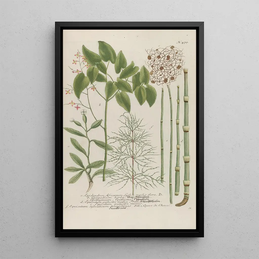 Phytanthoza iconographia Pl202 : een reis door botanische wonderen De kunstdruk van het werk Phytanthoza iconographia Pl202 brengt ons naar een weelderige tuin, waar elke plant met uitzonderlijke precisie wordt weergegeven. De heldere kleuren en de delicate vormen van bloemen en bladeren creëren een harmonieuze compositie, die de schoonheid en diversiteit van de flora oproept. De graveertechniek die Johann Wilhelm Weinmann gebruikt, stelt hem in staat om de kleinste details vast te leggen, waardoor elk element bijna levend lijkt. Dit werk is een uitnodiging tot verwondering, tot het ontdekken van de schatten die de natuur ons biedt. Johann Wilhelm Weinmann : een meester in de botanische kunst Johann Wilhelm Weinmann, actief in de achttiende eeuw, wordt erkend als een van de pioniers van de botanische illustratie. Zijn belangrijkste werk, de Phytanthoza iconographia, getuigt van zijn inzet om kunst en wetenschap te combineren. Geïnspireerd door de botanische verkenningen van zijn tijd, wist hij de essentie van exotische planten met opmerkelijke precisie vast te leggen. Weinmann heeft ook bijgedragen aan de verspreiding van botanische kennis door middel van zijn illustraties, waardoor minder bekende soorten toegankelijk werden voor het grote publiek. Zijn nalatenschap blijft bestaan en inspireert talloze kunstenaars en wetenschappers door de eeuwen heen. Een decoratief stuk met vele voordelen De kunstdruk van Phytanthoza iconographia Pl202 is een decoratieve keuze die elke leefruimte verrijkt. Of het nu in een woonkamer, kantoor of slaapkamer is, dit doek brengt een vleugje elegantie en frisheid. De kwaliteit van de afdruk garandeert een trouwheid aan de originele details, waardoor elk blikmoment een moment van contemplatie wordt. Door dit werk in uw inrichting te integreren, creëert u een rustgevende en inspirerende sfeer, terwijl u de schoonheid van de natuur viert. Het is een stuk dat zowel kunstliefhebbers als botaniekfans zal aanspreken en tegelijkertijd een esthetische dimensie aan uw interieur toevoegt.