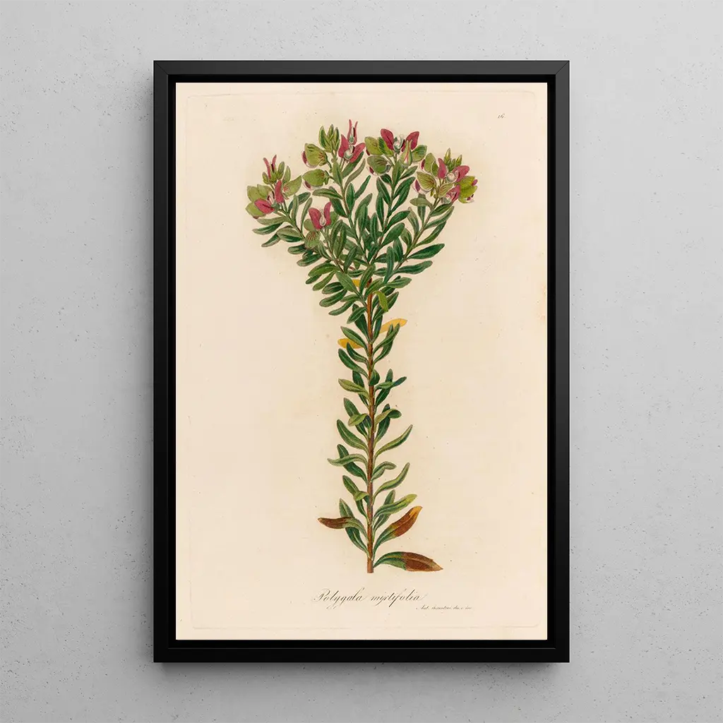Kiezen voor de kunstdruk van Polygala myrtifolia betekent kiezen voor een decoratief stuk dat een frisse en vitale uitstraling aan uw interieur geeft. Of het nu in een woonkamer, kantoor of slaapkamer is, dit doek past harmonieus in diverse stijlen van inrichting. De hoge kwaliteit van de afdruk en de trouw aan de oorspronkelijke kleuren garanderen een onmiskenbare esthetische aantrekkingskracht. Door deze doek aan uw collectie toe te voegen, geeft u uw ruimte een uitnodiging tot contemplatie en ontsnapping, terwijl u de schoonheid van de natuur viert.