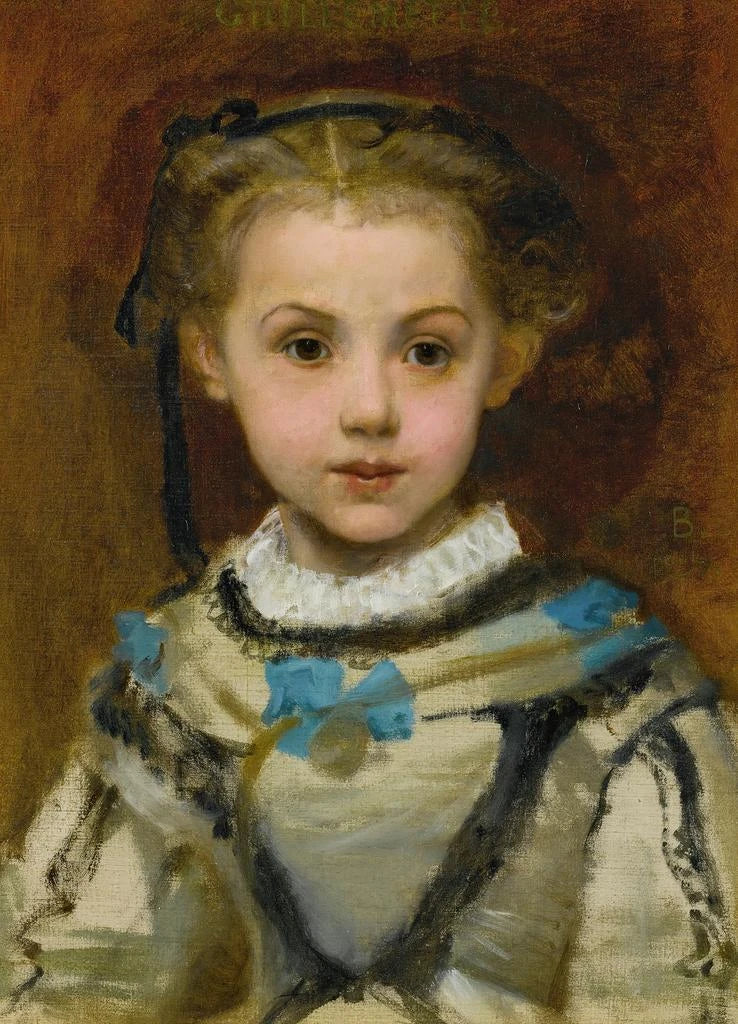 De kunstdruk van het Portret van Guillemette de Lareinty, een werk van Paul-Jacques-Aimé Baudry, onthult een emotionele intensiteit door de blik van haar onderwerp. De compositie benadrukt het delicate gezicht van Guillemette, omgeven door zacht licht dat haar fijne trekken en haar uitgebreide kapsel accentueert. De warme kleuren en subtiele nuances van de huid creëren een intieme en boeiende sfeer. Dit doek, met zijn verbluffende realisme, nodigt de kijker uit om na te denken over het verhaal en de persoonlijkheid van de jonge vrouw, waardoor dit werk een waar meesterwerk van het portret is.