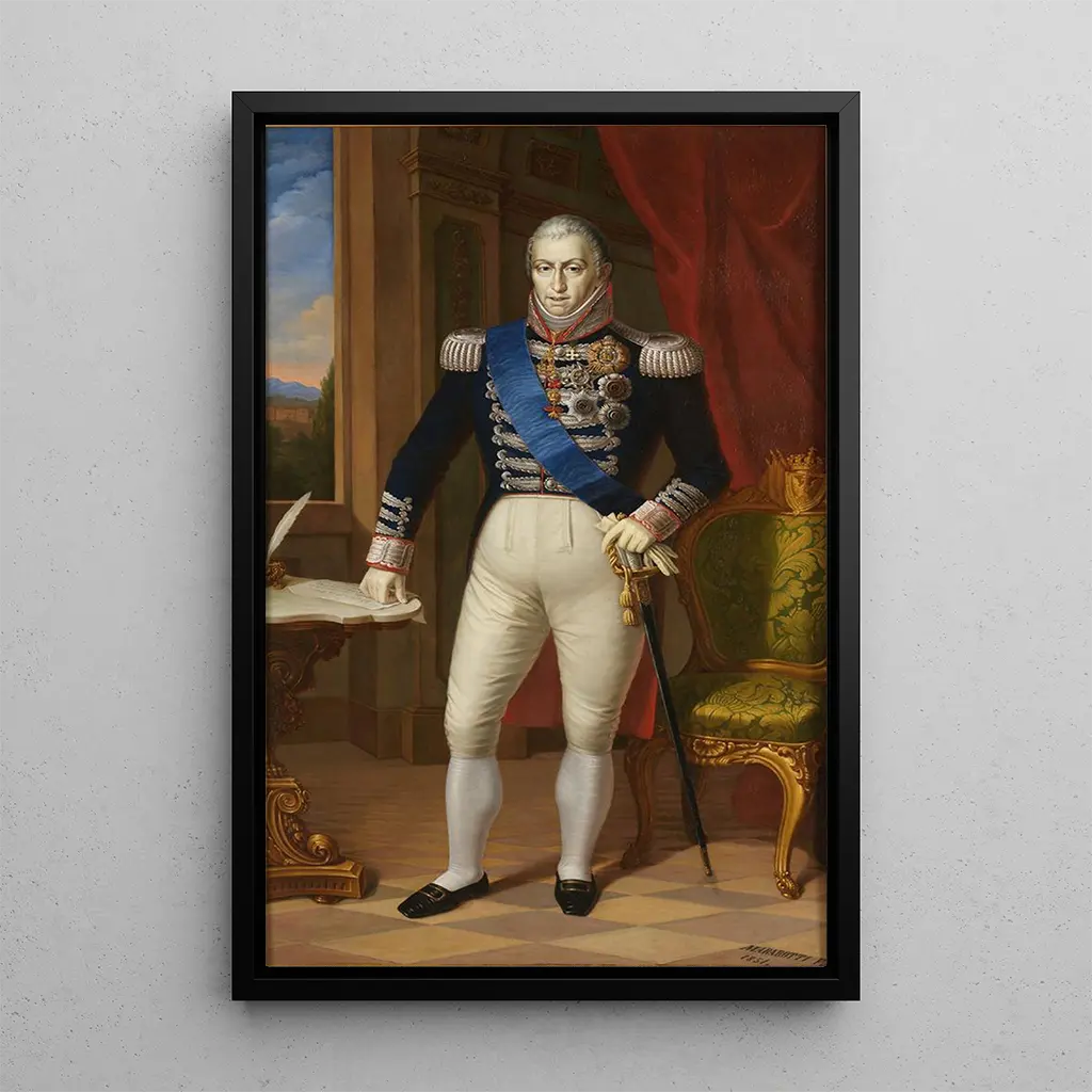 De kunstdruk van het portret van Carlo Felice is een decoratieve keuze die een vleugje verfijning aan uw ruimte zal toevoegen. Of het nu in een kantoor, woonkamer of wachtkamer is, dit doek trekt de aandacht en wekt bewondering. De afdrukkwaliteit garandeert een uitzonderlijke fideliteit aan de details van het originele werk, waardoor u de rijkdom van kleuren en texturen volledig kunt waarderen. Door deze kunstdruk in uw decoratie te integreren, creëert u een omgeving die kunst en geschiedenis viert, terwijl u een vleugje prestige aan uw interieur toevoegt.