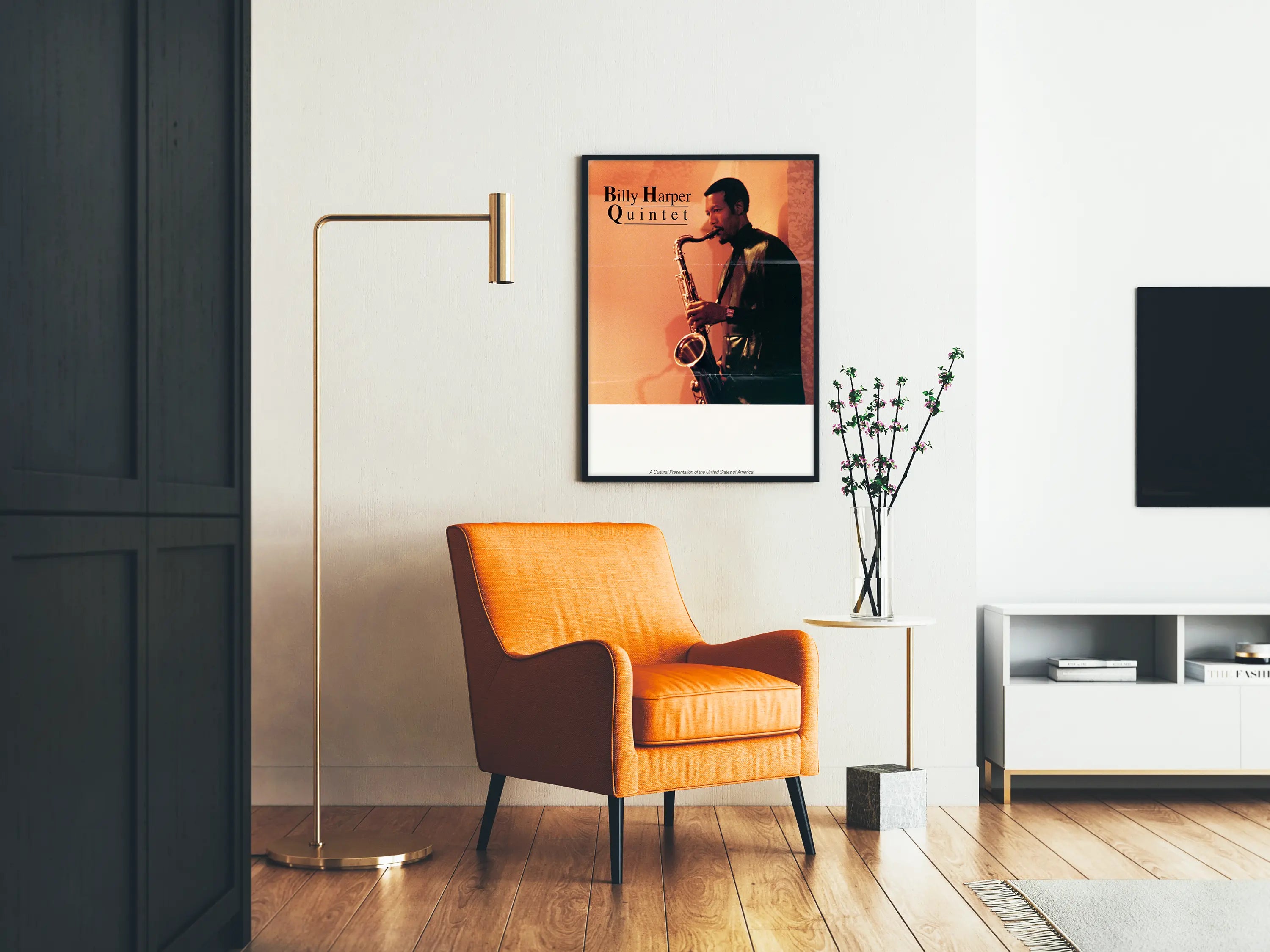 Voeg een vleugje elegantie en verfijning toe aan uw interieur met dit decoratieve affiche van Billy Harper, iconische saxofoonspeler, in volle uitvoering met zijn kwintet. Deze wanddecoratie vangt de essentie van de jazz door een boeiende foto waarop de artiest te zien is terwijl hij op de saxofoon speelt, gekleed in een donkere outfit die zijn charisma en passie voor muziek benadrukt. De achtergrond in warme oranje tinten creëert een intieme en gezellige sfeer, ideaal voor een woonkamer, kantoor of muziekkamer. Dit affiche, met zijn retrostijl en verzorgde esthetiek, past perfect in een eigentijdse of vintage inrichting. Het is ook een uitstekende wanddecoratiekeuze voor liefhebbers van muziek, jazz en beeldende kunst, die een rustige en inspirerende sfeer in de ruimte brengen. De sobere en elegante tekst 'Billy Harper Quintet' onderstreept het muzikale en authentieke karakter van dit stuk, en eert de culturele rijkdom van de Verenigde Staten. Dit affiche is een kwaliteitsvol poster, ontworpen voor liefhebbers van wanddecoratie en verzamelaars van muzikale beelden. Ideaal als poster om een lege muur te verfraaien, biedt deze afbeelding een harmonieuze balans tussen artistieke emotie en decoratief ontwerp. Voor wie een ruimte wil verrijken met een werk dat live muziek en creativiteit oproept, is dit fotografische schilderij van Billy Harper Quintet een duidelijke keuze. Verhef uw interieur met dit imposante wandaffiche dat uitnodigt tot ontdekking en contemplatie van jazz via een krachtig en elegant visueel portret.