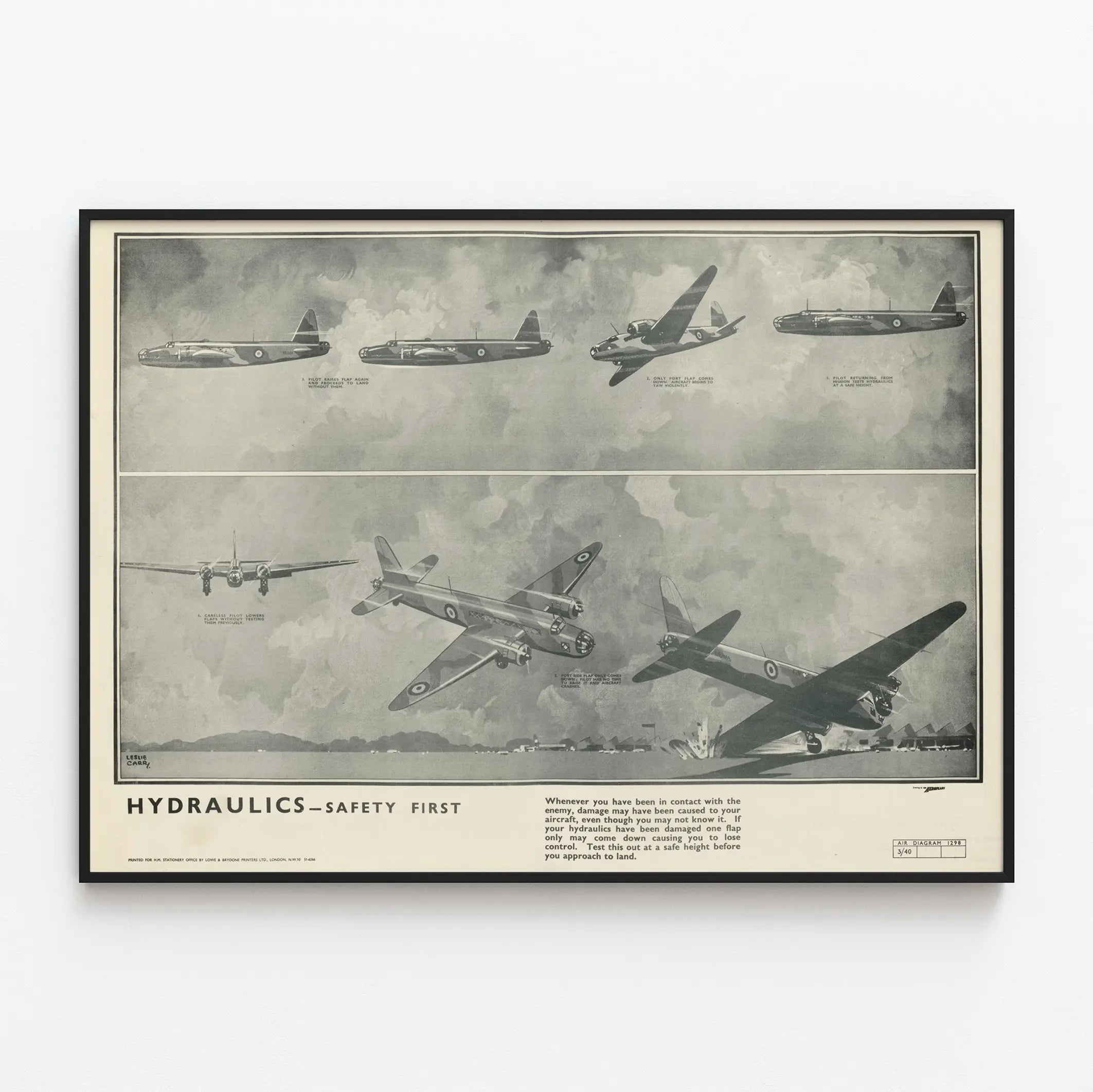 Vintage poster Hydraulische Veiligheid Eerst - Technische luchtvaartposter