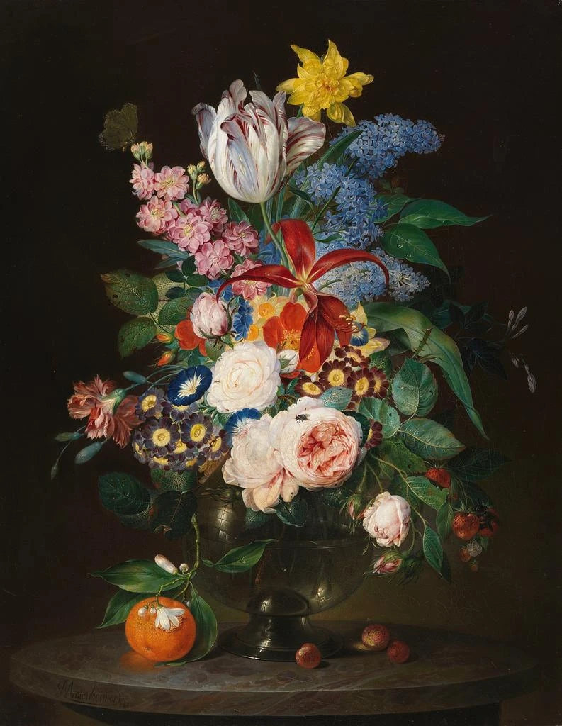 Prachtige stilleven van bloemen met insecten - Theodor Mattenheimer