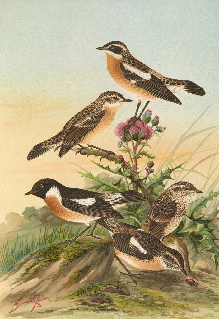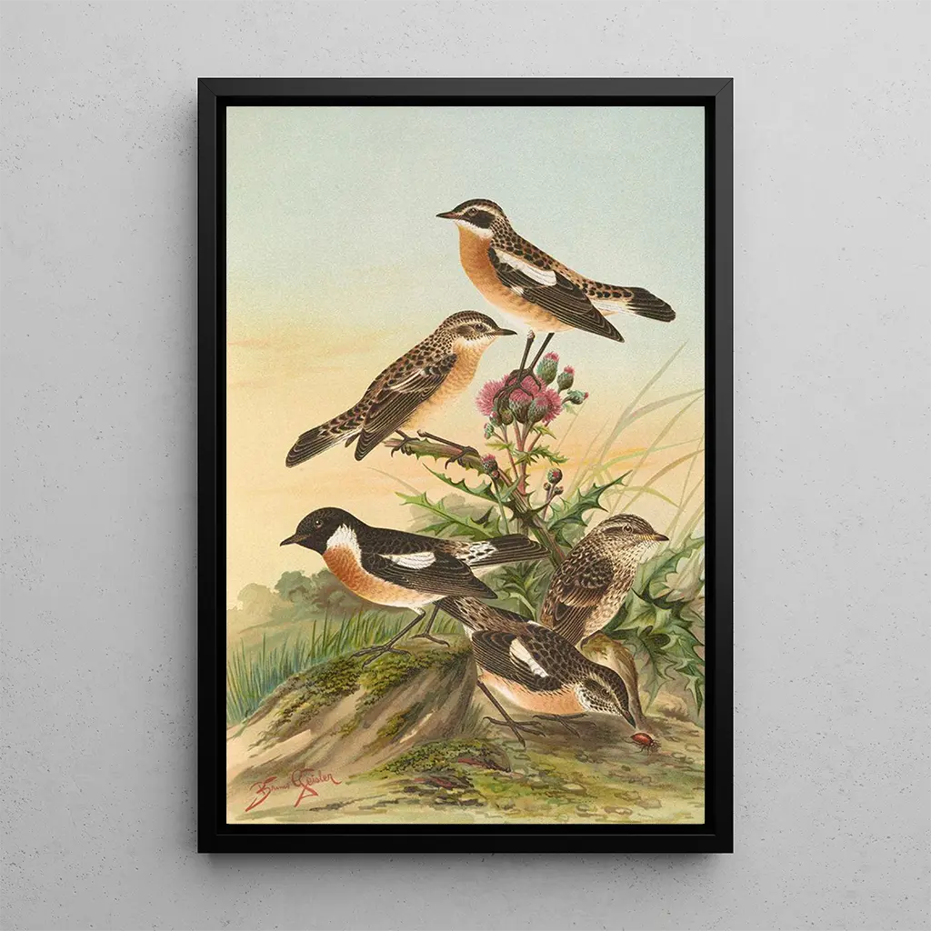 Schilderij Pratincola rubetra Prantincola rubicola - Johann Friedrich Naumann | Kunstdruk