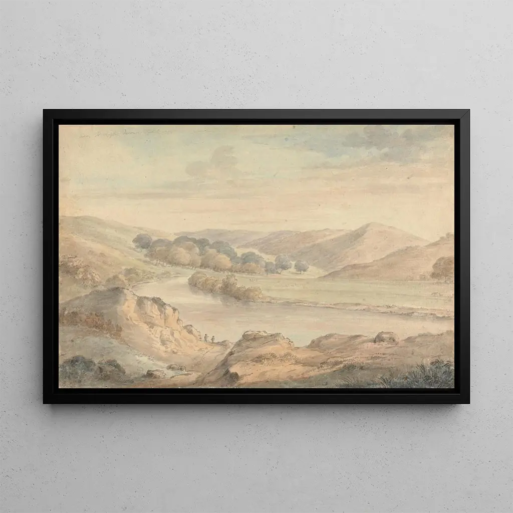 In deze kunstdruk van Près de Torrington, Devonshire, brengt Kapitein Francis Grose ons naar het hart van een rustgevend Engels landschap. De zachte tinten groen en blauw mengen harmonieus, waardoor een sfeer van rust ontstaat. De olieverftechniek stelt je in staat om de delicate nuances van het licht vast te leggen, dat weerkaatst op het water en de bladeren verlicht. De compositie, met zijn vloeiende lijnen en organische vormen, nodigt uit tot contemplatie en roept een rustige wandeling door het Engelse platteland op.