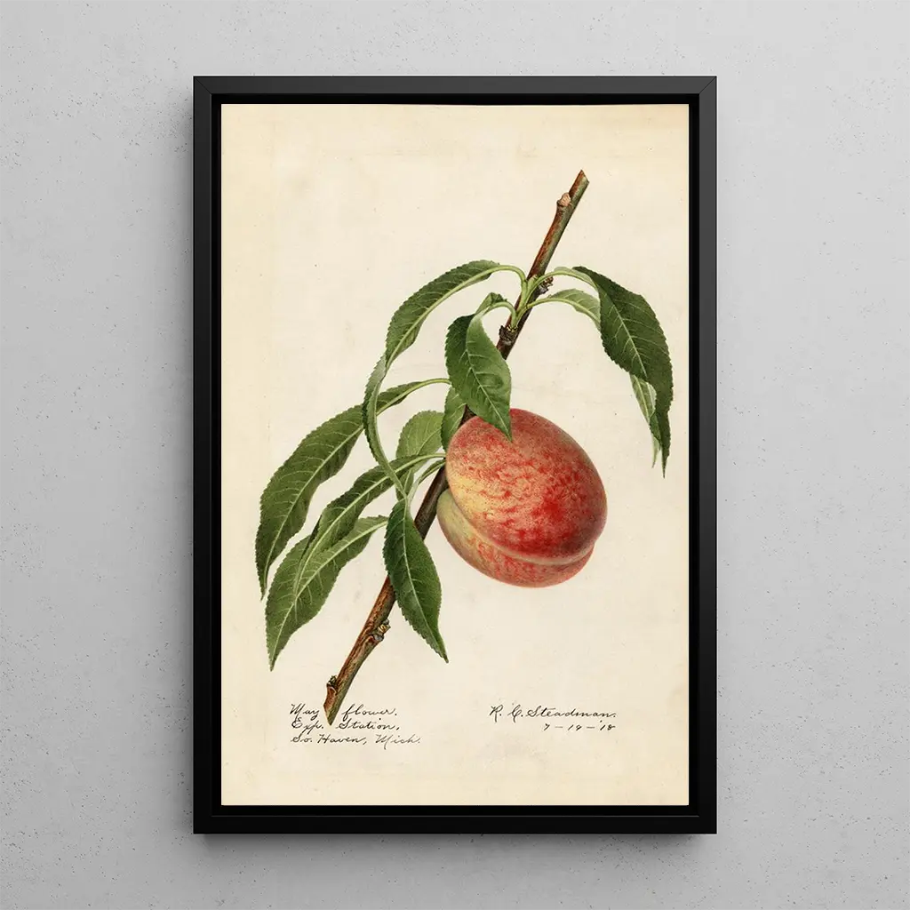 De kunstdruk Prunus persica Mayflower roept de magie op van bloeiende perziken, waar pastelkleuren zich verweven om een betoverend schilderij te creëren. De delicate nuances van roze en wit ontvouwen zich gracieus, terwijl ze het licht van een lentedag vangen. De gebruikte techniek, zowel nauwkeurig als expressief, laat de zachtheid van de bloemblaadjes en de frisheid van de knoppen voelen. Dit werk nodigt uit tot een rustige contemplatie, en herinnert aan de vergankelijke schoonheid van de natuur in volle bloei.