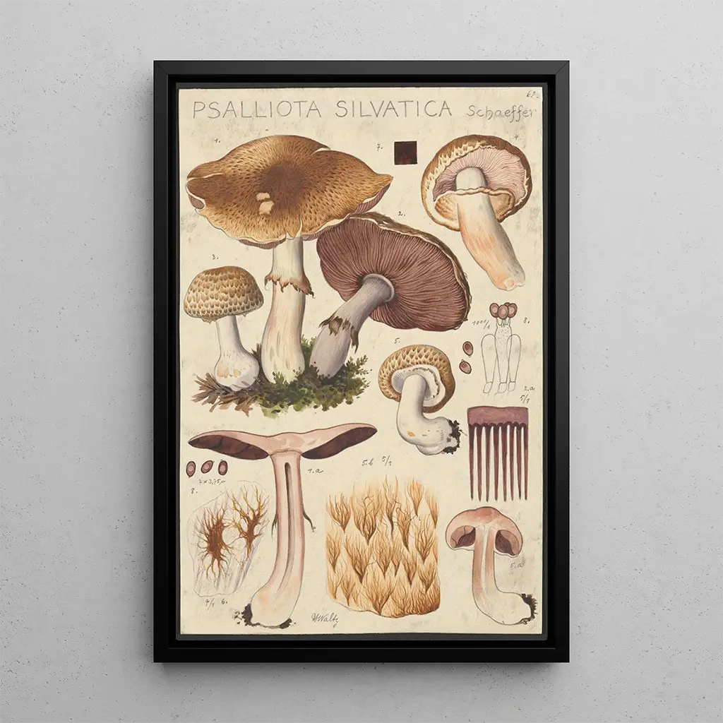 De kunstdruk van Psalliota silvatica Schaeffer vormt een ideale decoratieve keuze om je interieur te verrijken, of het nu in een woonkamer, kantoor of slaapkamer is. De afdrukkwaliteit garandeert een opmerkelijke fideliteit aan de kleuren en details van het originele werk, en brengt een vleugje elegantie en natuur in je ruimte. De esthetische aantrekkingskracht van deze doek maakt het een gespreksonderwerp, terwijl het een rustgevende en inspirerende sfeer creëert. Kiezen voor deze kunstdruk betekent een kunstwerk integreren dat de schoonheid van de natuur viert en perfect past in een modern of klassiek interieur.