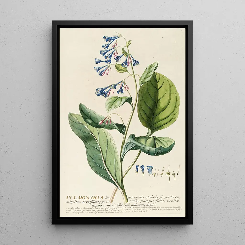 Kiezen voor een kunstdruk van Pulmonaria betekent kiezen voor een decoratief stuk dat een vleugje frisheid en natuur in uw interieur brengt. Of het nu in een woonkamer, kantoor of slaapkamer is, dit schilderij past harmonieus bij diverse decoratiestijlen. De kwaliteit van de afdruk garandeert een trouwheid aan de kleuren en details van het originele werk, zodat u kunt genieten van de verfijnde esthetiek van Ehret in het dagelijks leven. Door deze doek aan uw collectie toe te voegen, geeft u uw ruimte een rustgevende en inspirerende sfeer, terwijl u de tijdloze schoonheid van de flora viert.