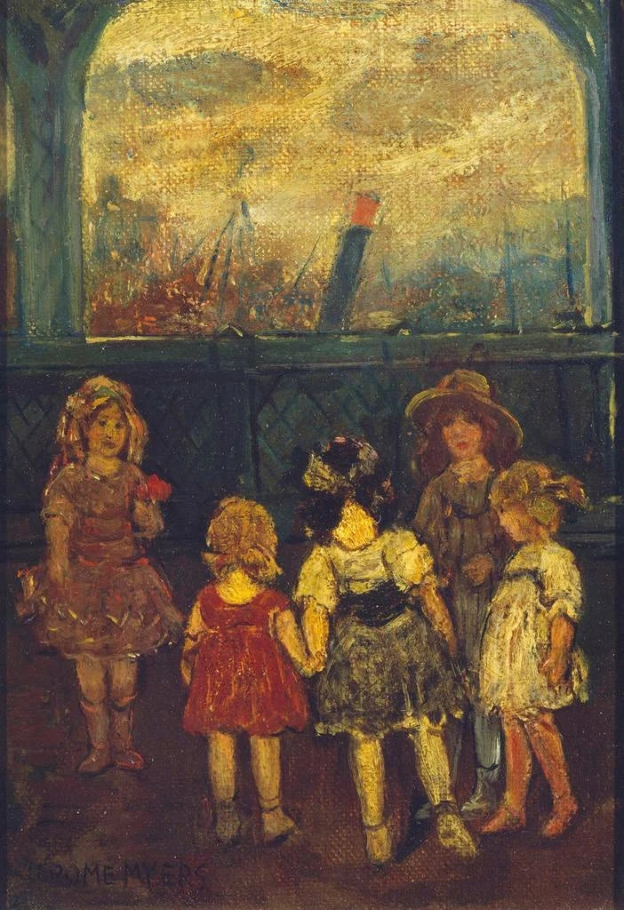 Jerome Myers, actif au début du XXe siècle, est un artiste américain connu pour ses représentations de la vie urbaine et des scènes de loisirs. Influencé par l'impressionnisme, il a su capturer la lumière et le mouvement avec une sensibilité unique. Ses œuvres, souvent centrées sur des thèmes de la vie quotidienne, reflètent une époque de transition et de modernité, où les espaces publics devenaient des lieux de rencontre et d'échange. "Quai de récréation" s'inscrit parfaitement dans cette démarche, témoignant de l'importance de la vie sociale dans le contexte historique de son époque.