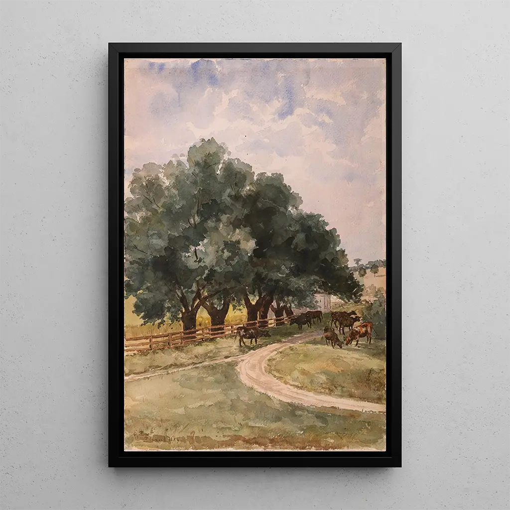 De kunstdruk van het werk Richmond van Elizabeth Boott Duveneck dompelt ons onder in een rustgevend schilderij waar de natuur bloeit. De zachte en harmonieuze kleuren, variërend van weelderig groen tot hemelsblauw, creëren een sfeer van rust. De delicate techniek van de kunstenaar, die aquarel en tekening combineert, maakt het mogelijk om het licht op een bijna etherische wijze vast te leggen. Elk detail, van de bladeren tot de reflecties in het water, wordt nauwkeurig weergegeven, wat de kijker uitnodigt tot langdurige contemplatie. Dit kunstwerk roept een wandeling op in een weelderige tuin, waar de tijd lijkt stil te staan, en biedt een welkome ontsnapping aan het dagelijks leven.