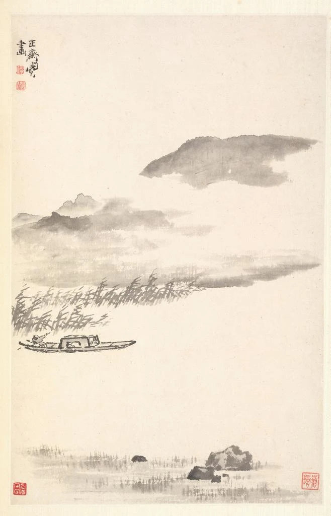 Schilderij Landschap met rivier - Min Zhen | Kunstdruk