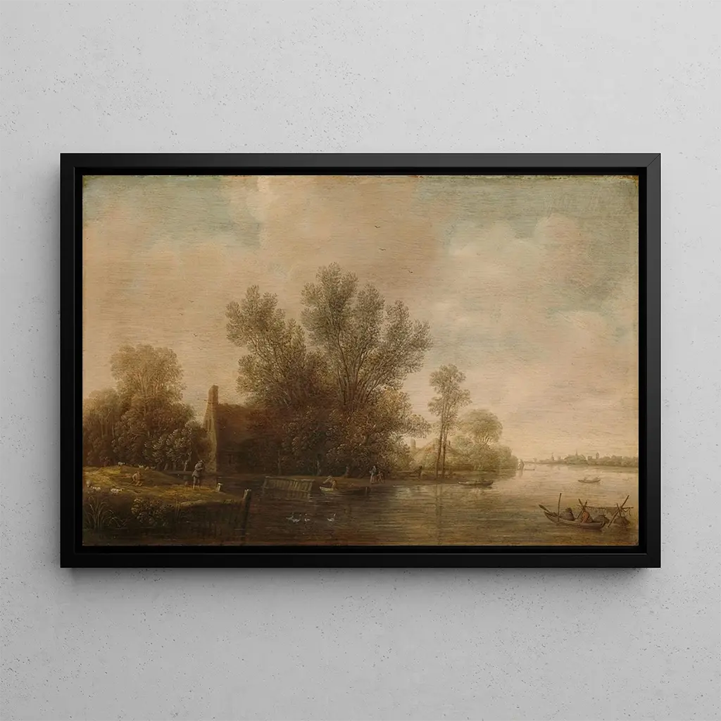 De kunstdruk van het "Rivierlandschap" is een ideale keuze om uw interieur te verfraaien, of het nu in een woonkamer, kantoor of slaapkamer is. De kwaliteit van de kunstdruk garandeert een opmerkelijke fideliteit aan de originele details, waardoor u kunt genieten van een tijdloos kunstwerk. Met zijn esthetische aantrekkingskracht brengt dit doek een vleugje sereniteit en natuur in uw decoratie. Door dit schilderij in uw ruimte te integreren, creëert u een rustgevende en inspirerende sfeer, perfect voor ontspanning en reflectie.