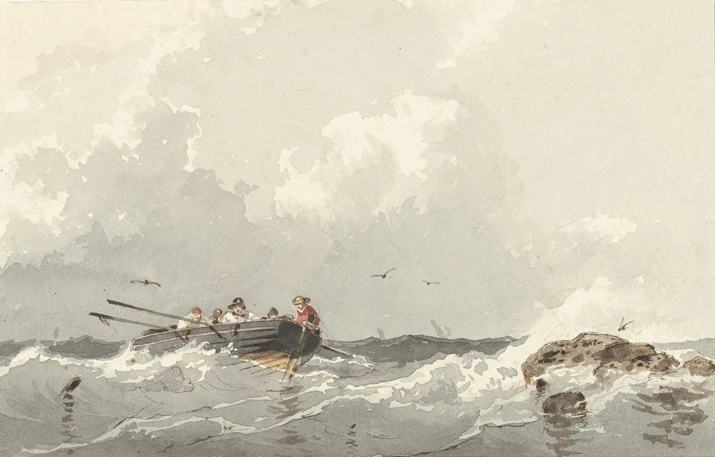 Roeiboot op zee - Frans Arnold Breuhaus de Groot
