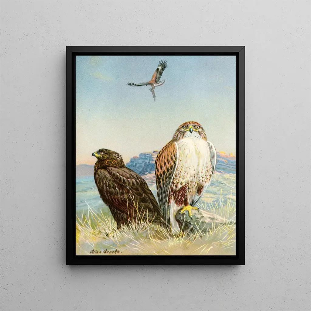 In het uitgestrekte panorama van de ornithologische kunst onderscheidt "Buse pattue rouilleuse - Allan Brooks" zich door zijn vermogen om niet alleen de essentie van de natuur vast te leggen, maar ook de ziel van de afgebeelde vogel. Dit werk, doordrenkt met een ongekende fijngevoeligheid, transporteert ons naar een wereld waarin de fauna met bijna fotografische precisie wordt belicht. De kunstenaar nodigt ons uit om de wilde schoonheid van deze majestueuze vogel te bewonderen, terwijl hij in ons een diepe bewondering voor de natuur ontwaakt. Elke penseelstreek lijkt een verhaal te vertellen, een verhaal dat langzaam wordt onthuld voor de oplettende blik van de toeschouwer.