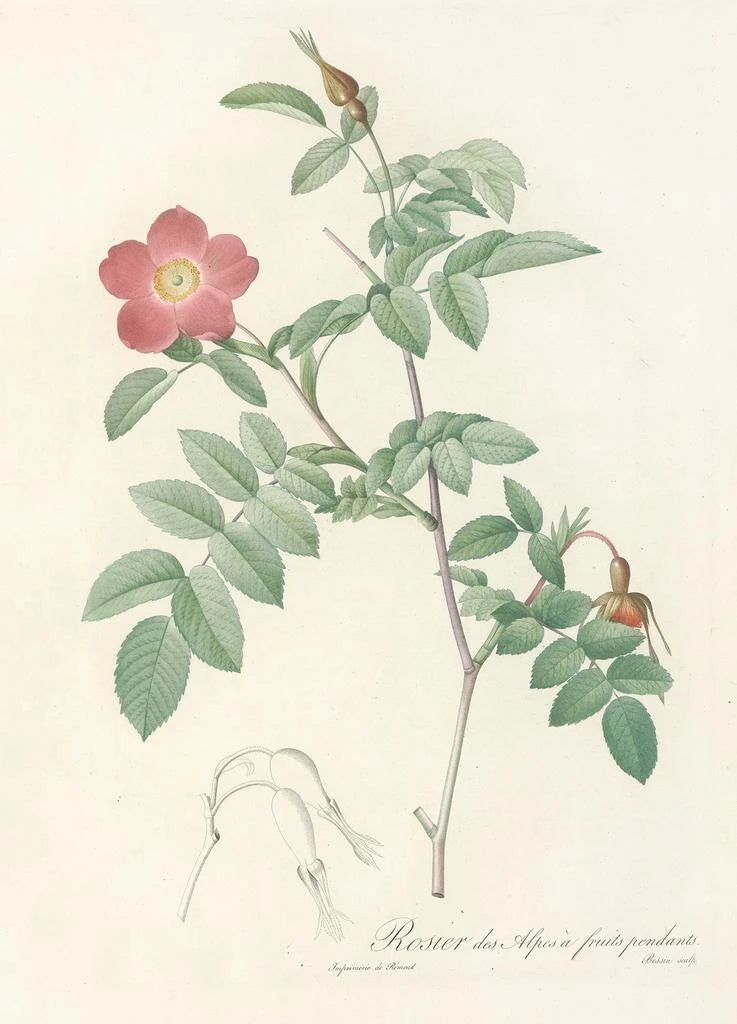 Schilderij Rosa Alpina Pendulina - Pierre Joseph Redouté | Kunstdruk