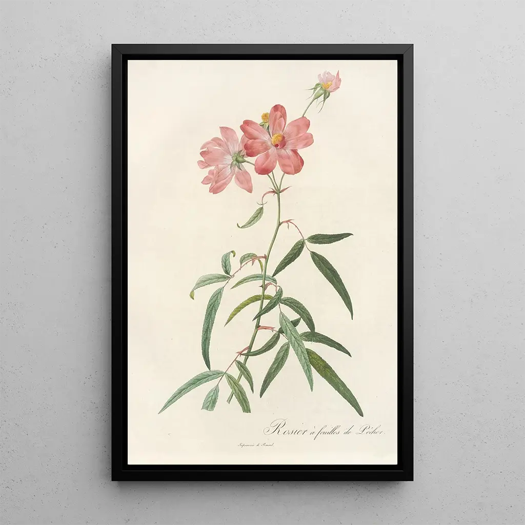 De kunstdruk van Rosa Longifolia, vervaardigd door Pierre Joseph Redouté, is een ware viering van de natuur. De lange, slanke stelen, versierd met delicate bloemen, roepen een natuurlijke gratie en tijdloze elegantie op. De nuances van roze en groen, subtiel gearceerd, vangen het licht op een manier die de ziel doet vibreren. De aquareltechniek, zo dierbaar voor Redouté, maakt het mogelijk om elk detail met opmerkelijke fijnheid weer te geven, waardoor een sfeer van sereniteit en schoonheid ontstaat. Dit werk nodigt ons uit om de delicatesse en complexiteit van de flora te waarderen.