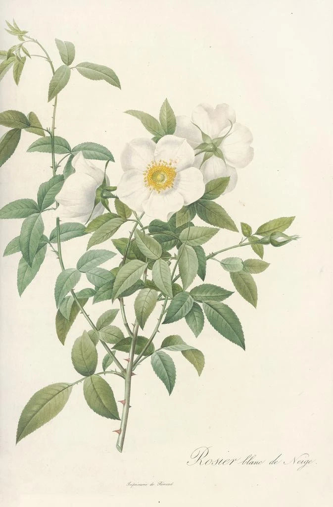 Pierre Joseph Redouté, actief in de 18e eeuw, wordt erkend als een van de grootste botanische illustratoren van zijn tijd. Zijn loopbaan, gekenmerkt door een rigoureuze opleiding en een passie voor de natuur, leidde hem tot de officiële schilder van het Franse hof. Geïnspireerd door de naturalistische beweging, wist Redouté de schoonheid van bloemen vast te leggen met ongeëvenaarde precisie, waardoor zijn werken echte referenties werden in het veld van botanische illustratie. Rosa Nivea, zoals veel van zijn creaties, getuigt van zijn uitzonderlijk talent en zijn toewijding aan bloemkunst, een erfenis die blijft inspireren voor toekomstige generaties.